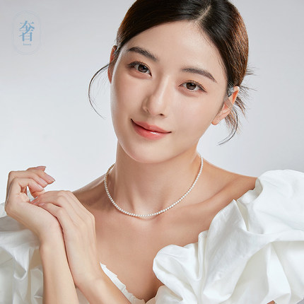 奢珠极光无暇淡水baby珠珍珠项链锁骨链S925银官方旗舰店