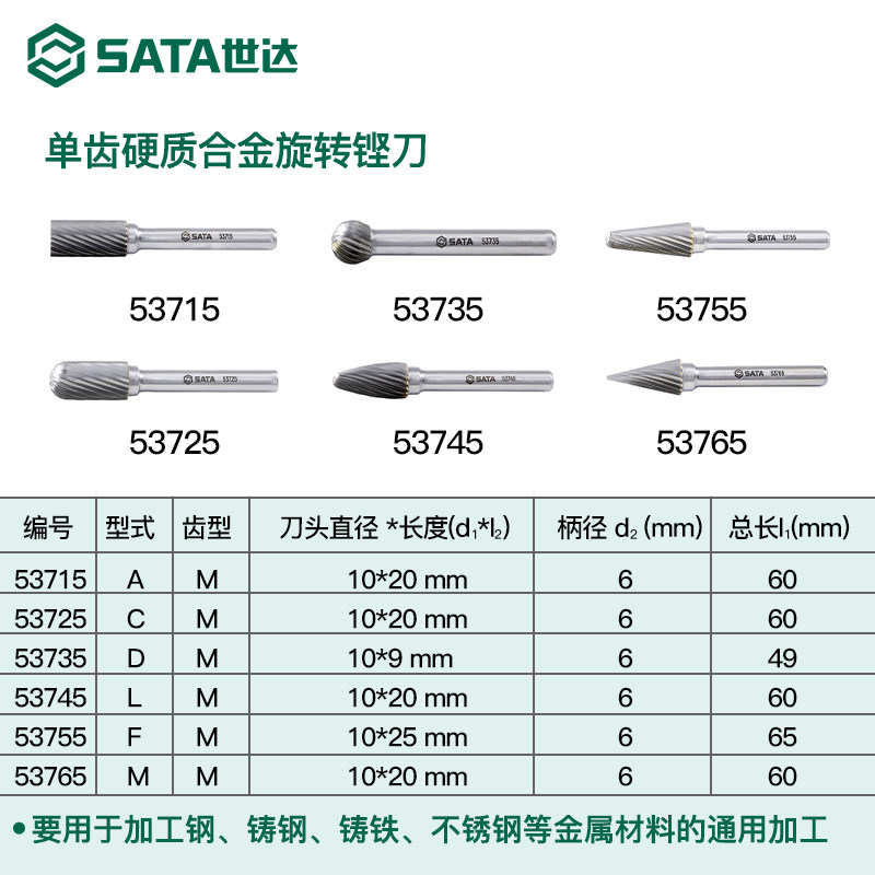 世达硬质合金电动旋转锉刀金属打磨磨头单刃双刃修边倒角抛光铣刀