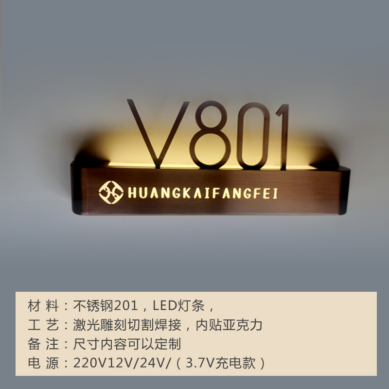 不锈钢酒店发光门牌号高档会所包厢餐厅足浴宾馆电竞宾馆led创意