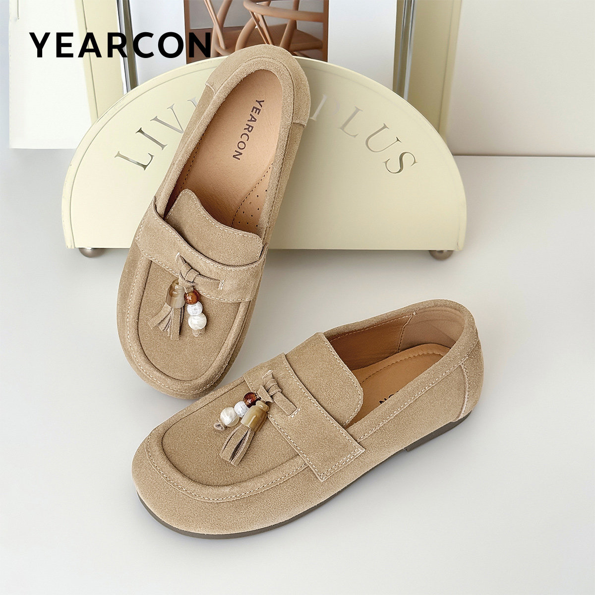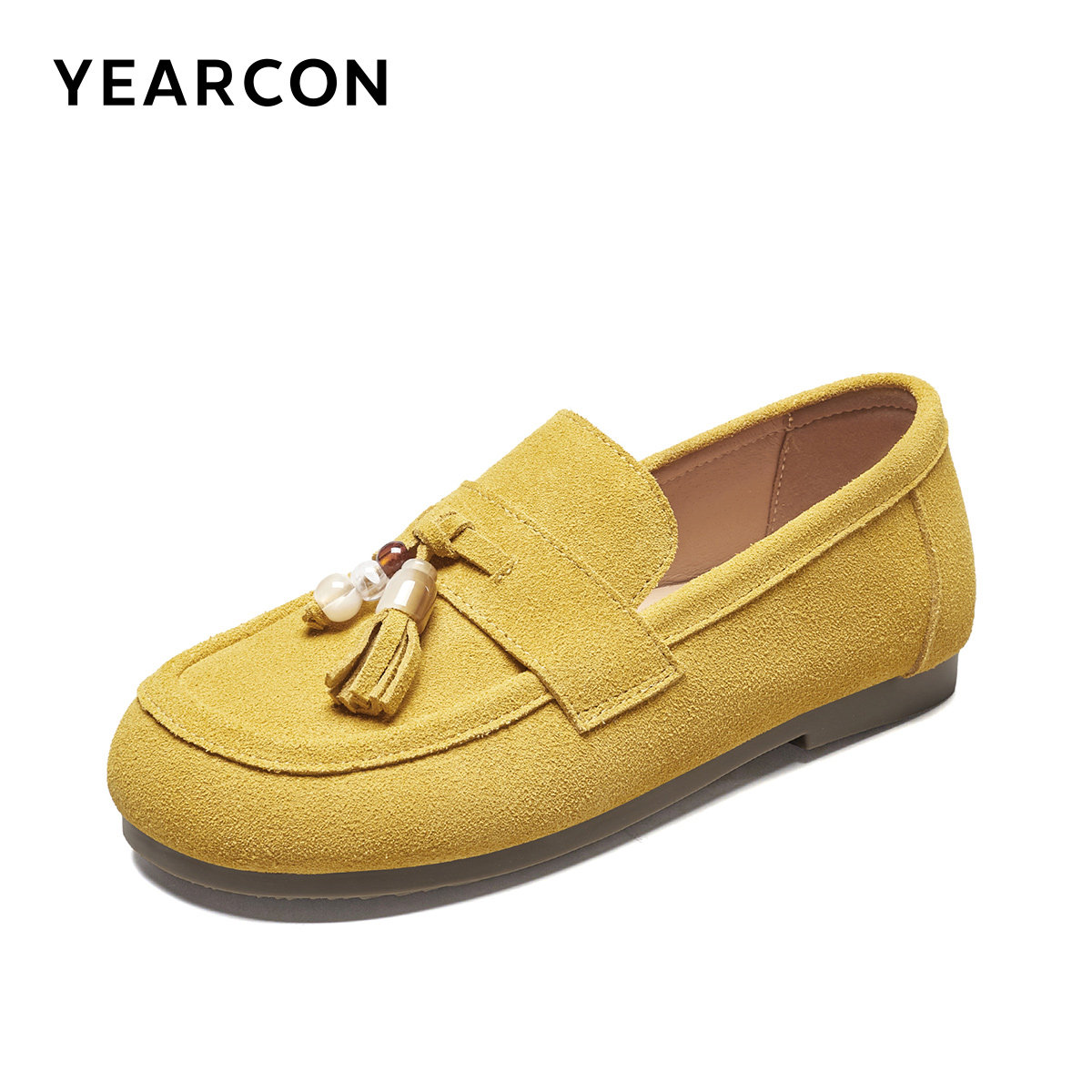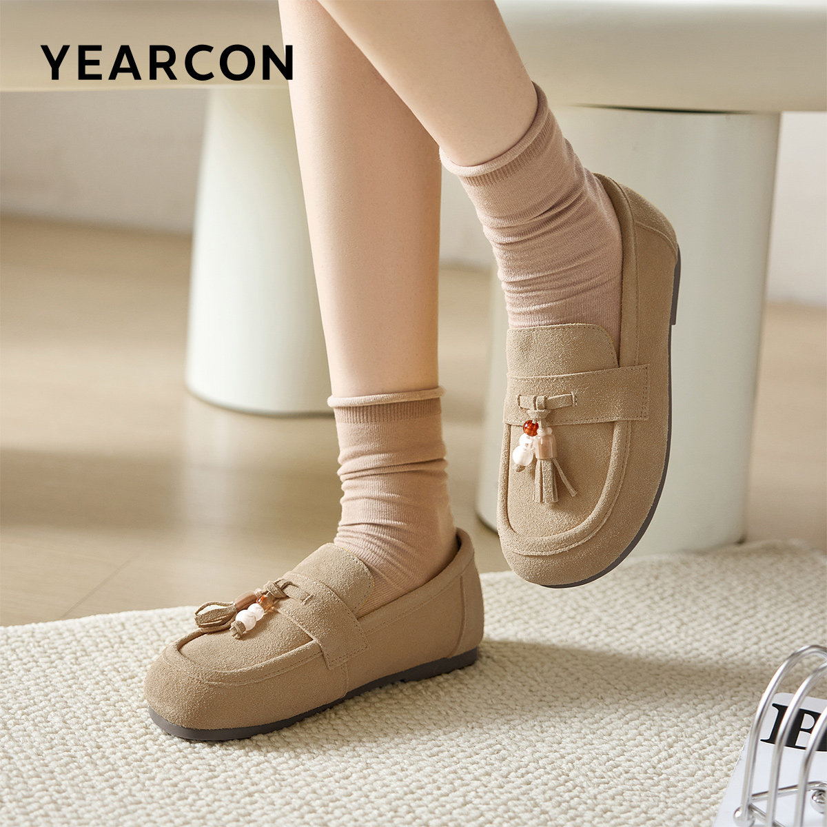 意尔康女鞋一脚蹬乐福鞋2025秋季新款百搭懒人豆豆鞋复古通勤单鞋