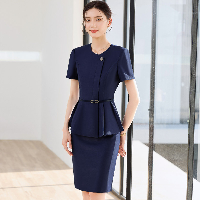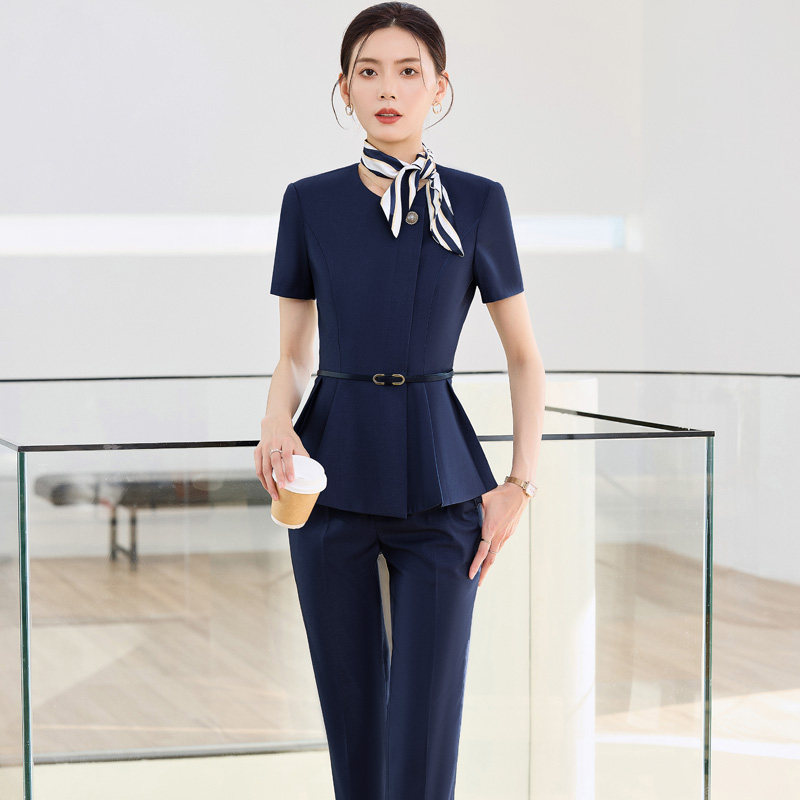 英郦短袖西装套装女夏季薄款商务正装美容院售楼部案场客服工作服