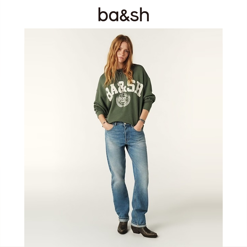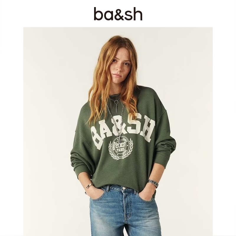 bash2025新款经典法式复古印花宽松套头圆领女士卫衣薄款1E25BENJ