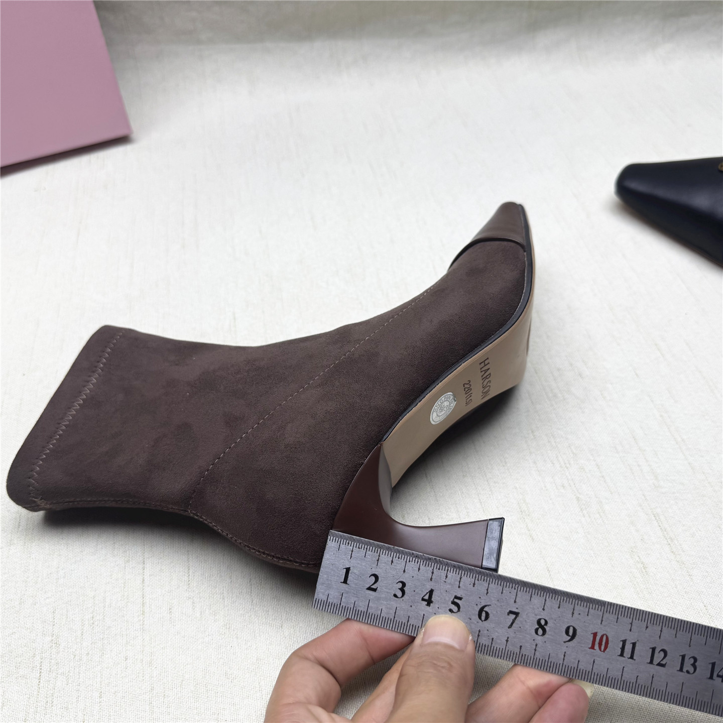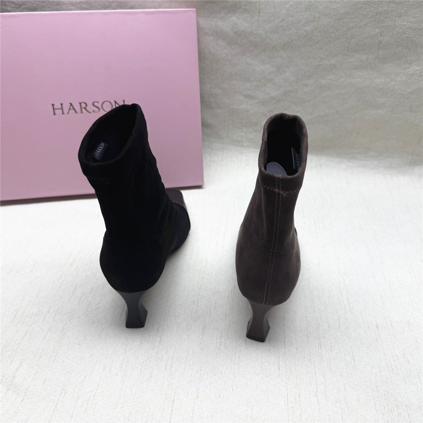 Harson/哈森正品撤柜时尚高跟弹力时装靴女秋冬新款织物真皮单鞋