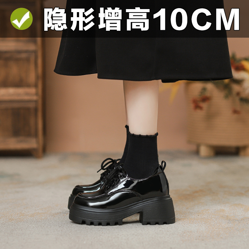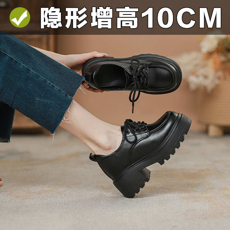真皮厚底乐福鞋女2025年新款百搭英伦风小皮鞋系带粗跟高跟单鞋子