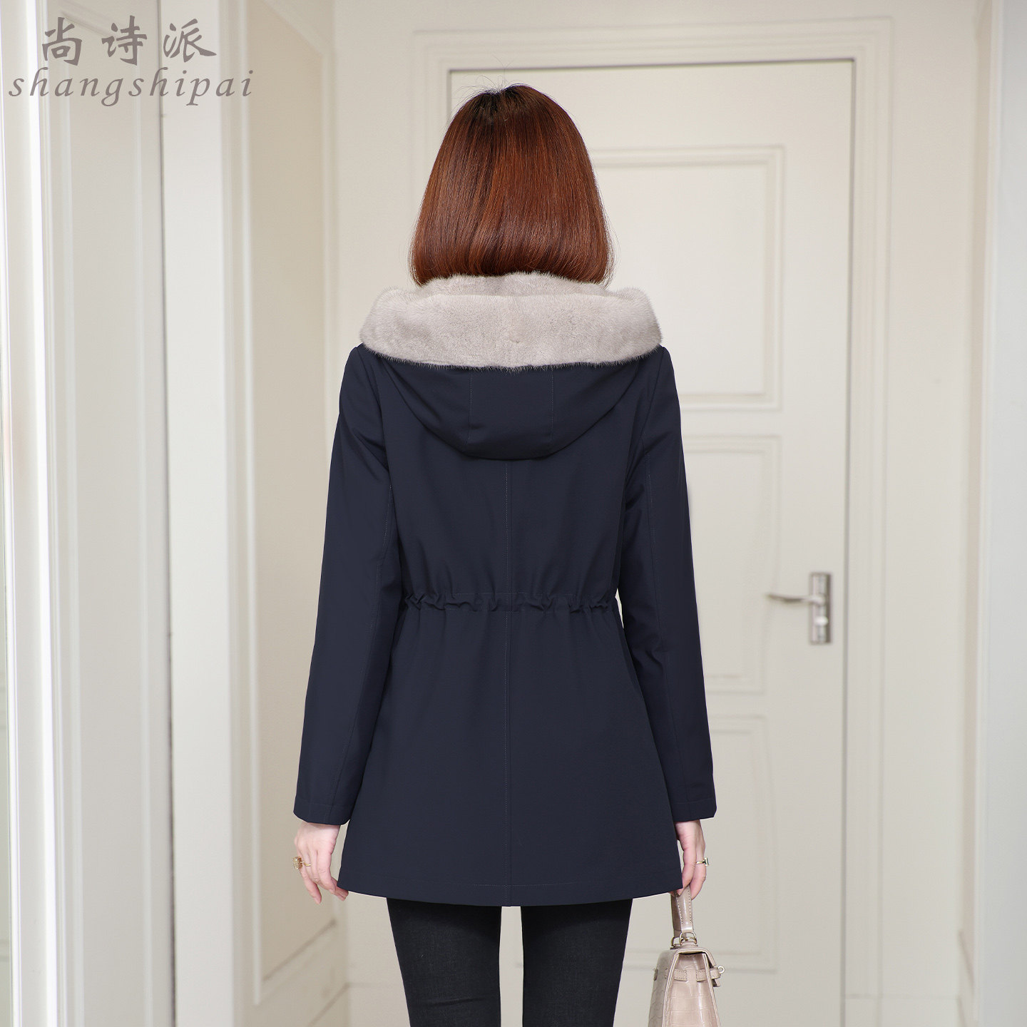 派克服女冬水貂毛领内胆可拆卸
