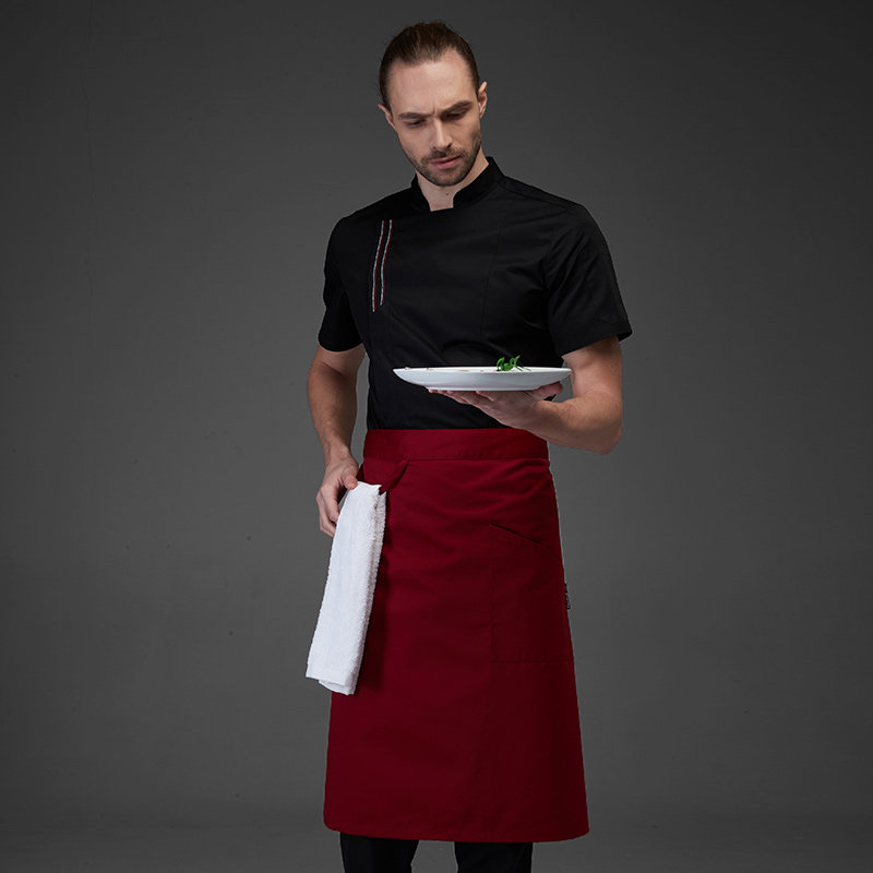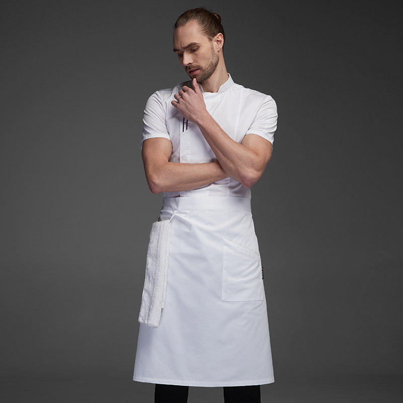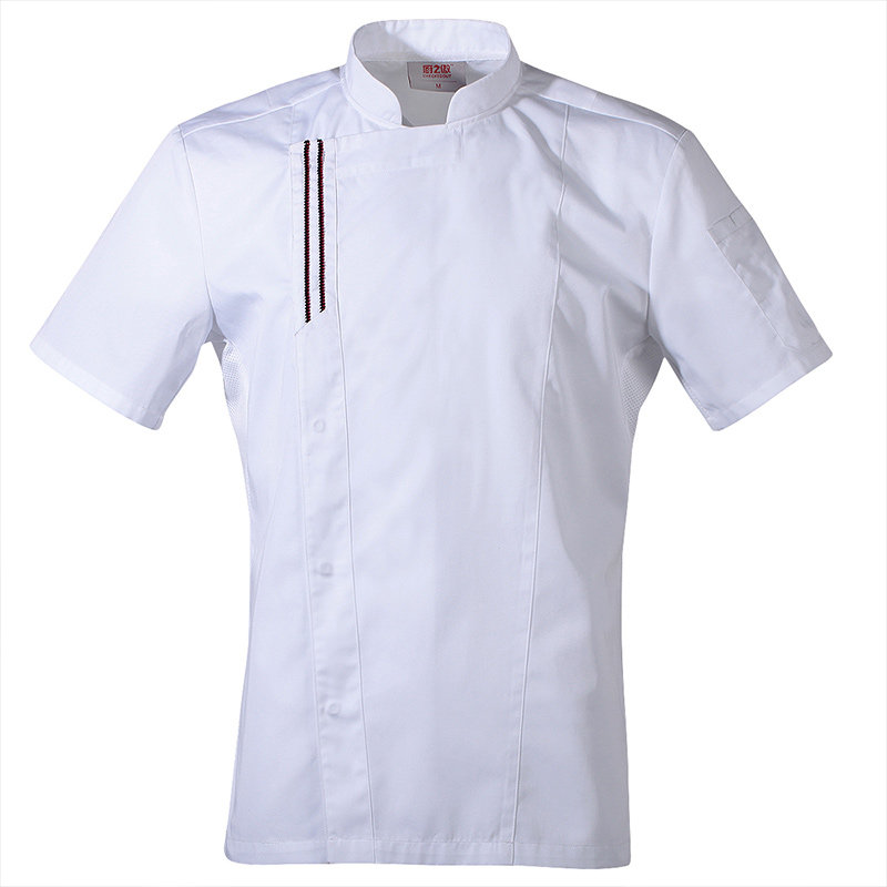 多米来厨师工作服男短袖薄款夏季透气厨房酒店餐饮厨师长衣服白黑