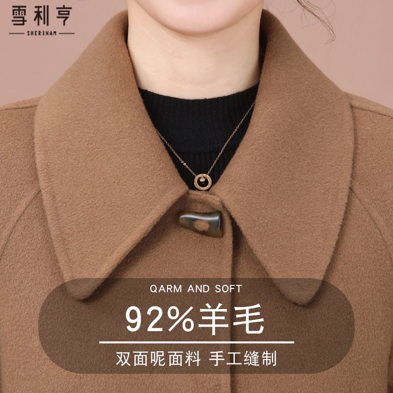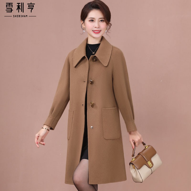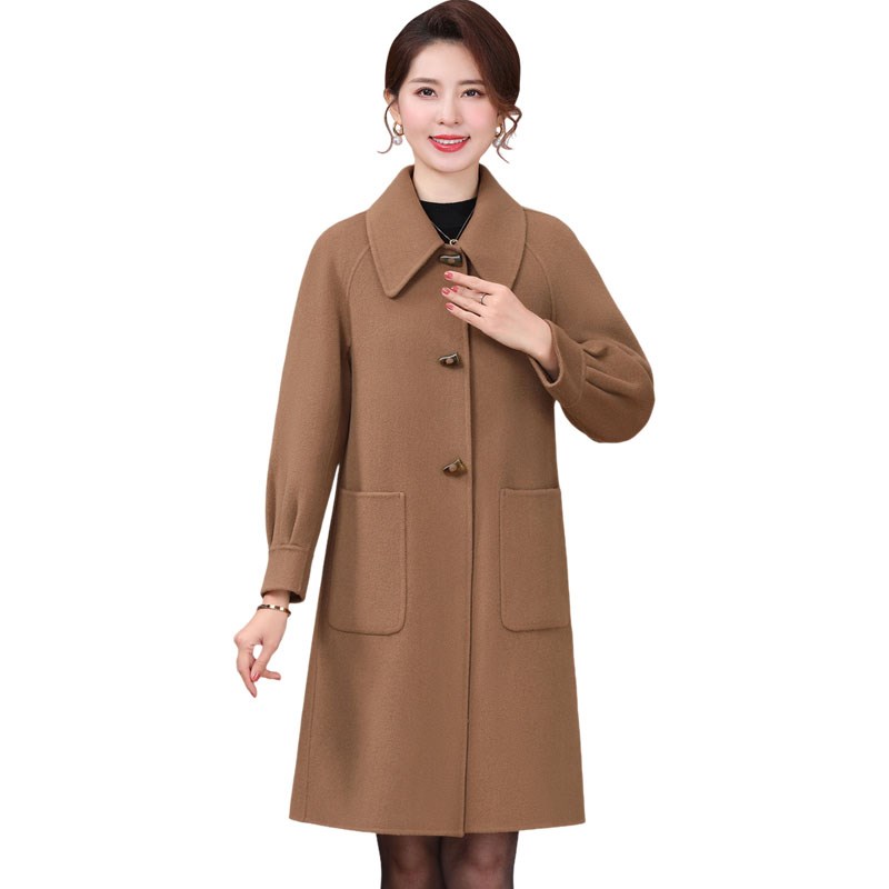 时尚中年妈妈装h双面呢大衣中长款秋冬宽松直筒驼色毛呢外套秋女