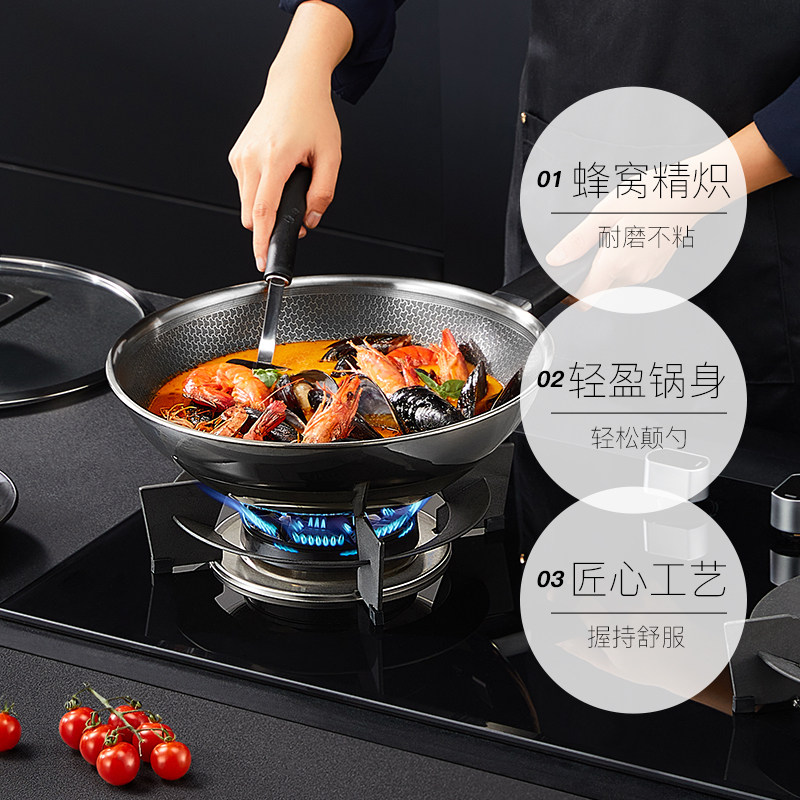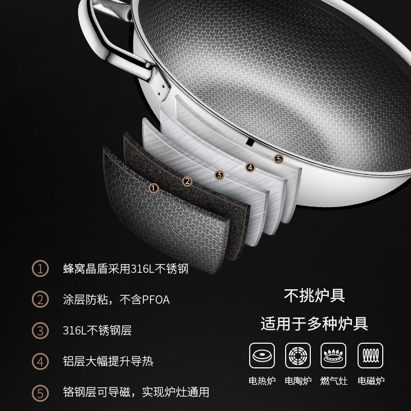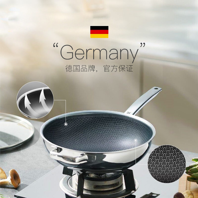 【自营】WMF德国福腾宝炽能蜂窝不锈钢炒锅不粘锅平底锅炒菜锅W