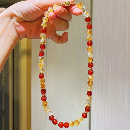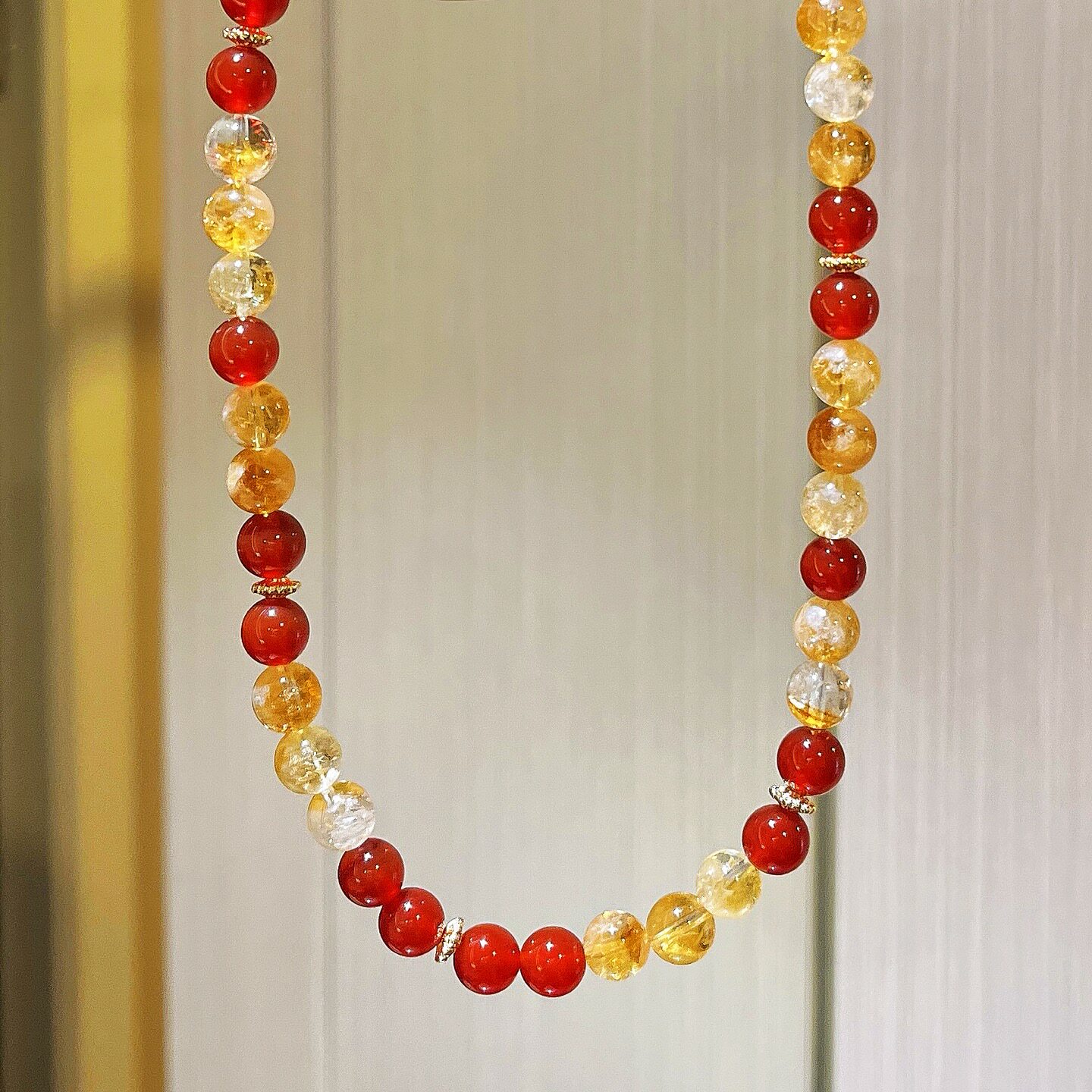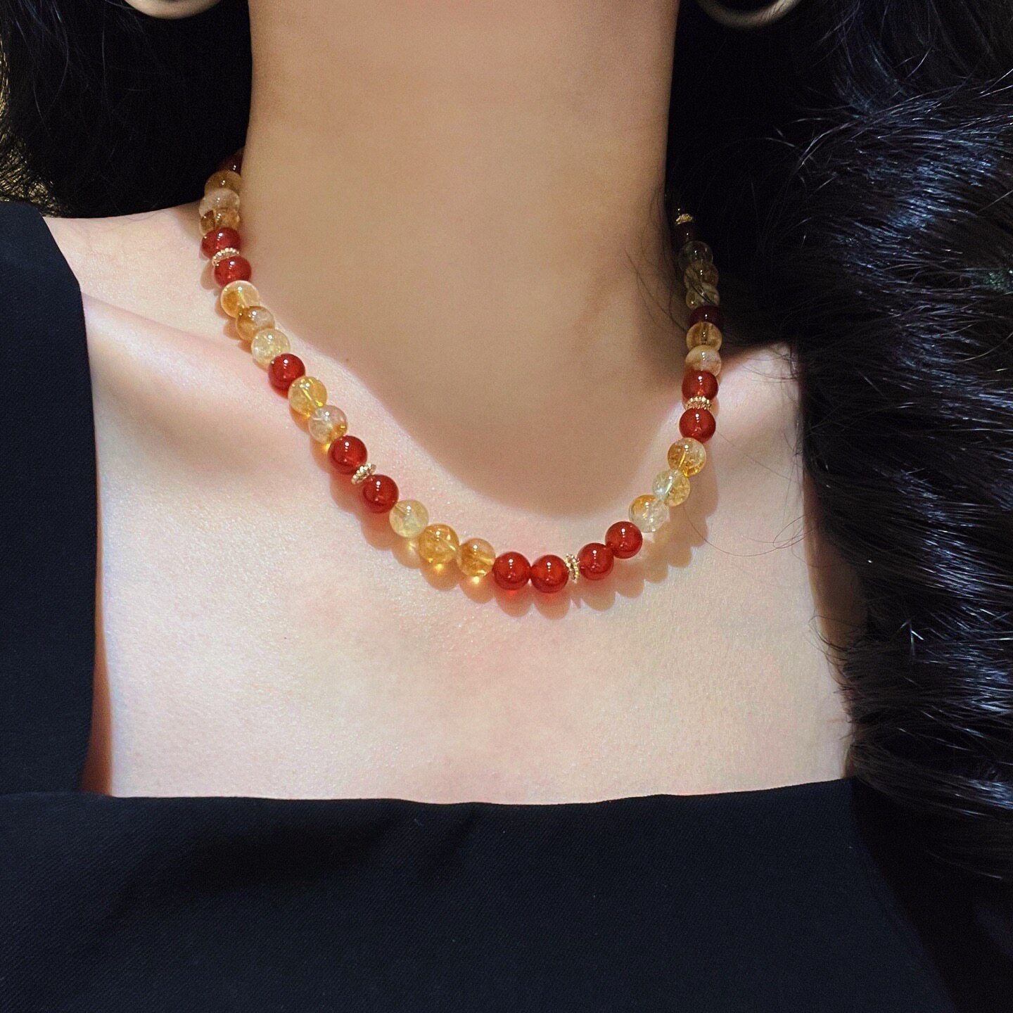 秋冬8mm天然黄水晶红玉髓设计感锁骨链项链颈链