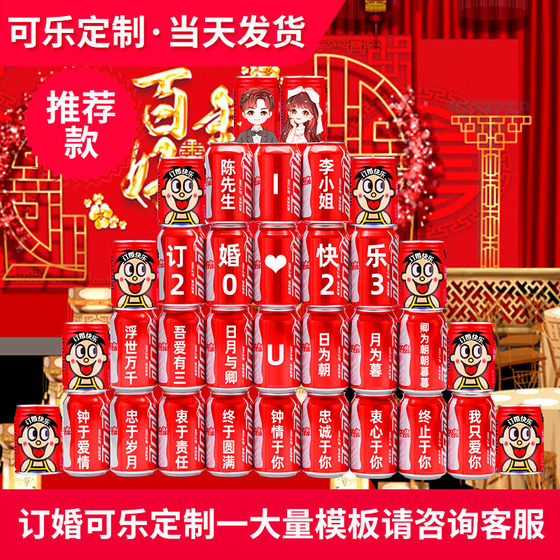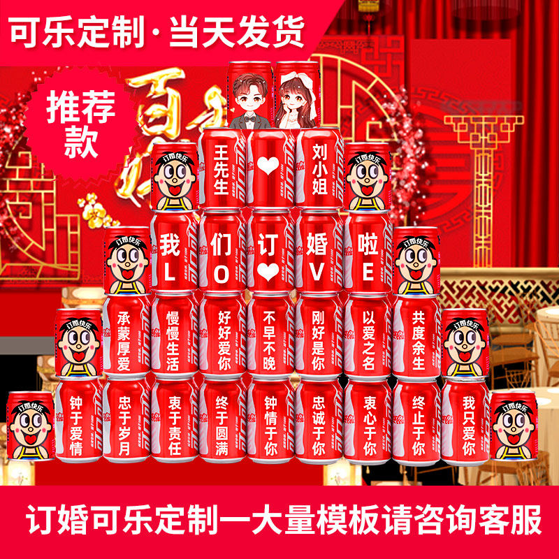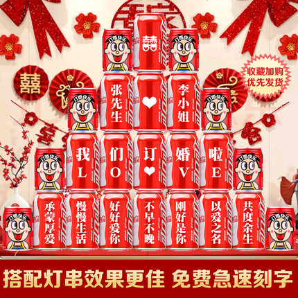 订婚结婚可乐旺仔定制刻字订婚宴装饰布置仪式感送男女朋友礼物