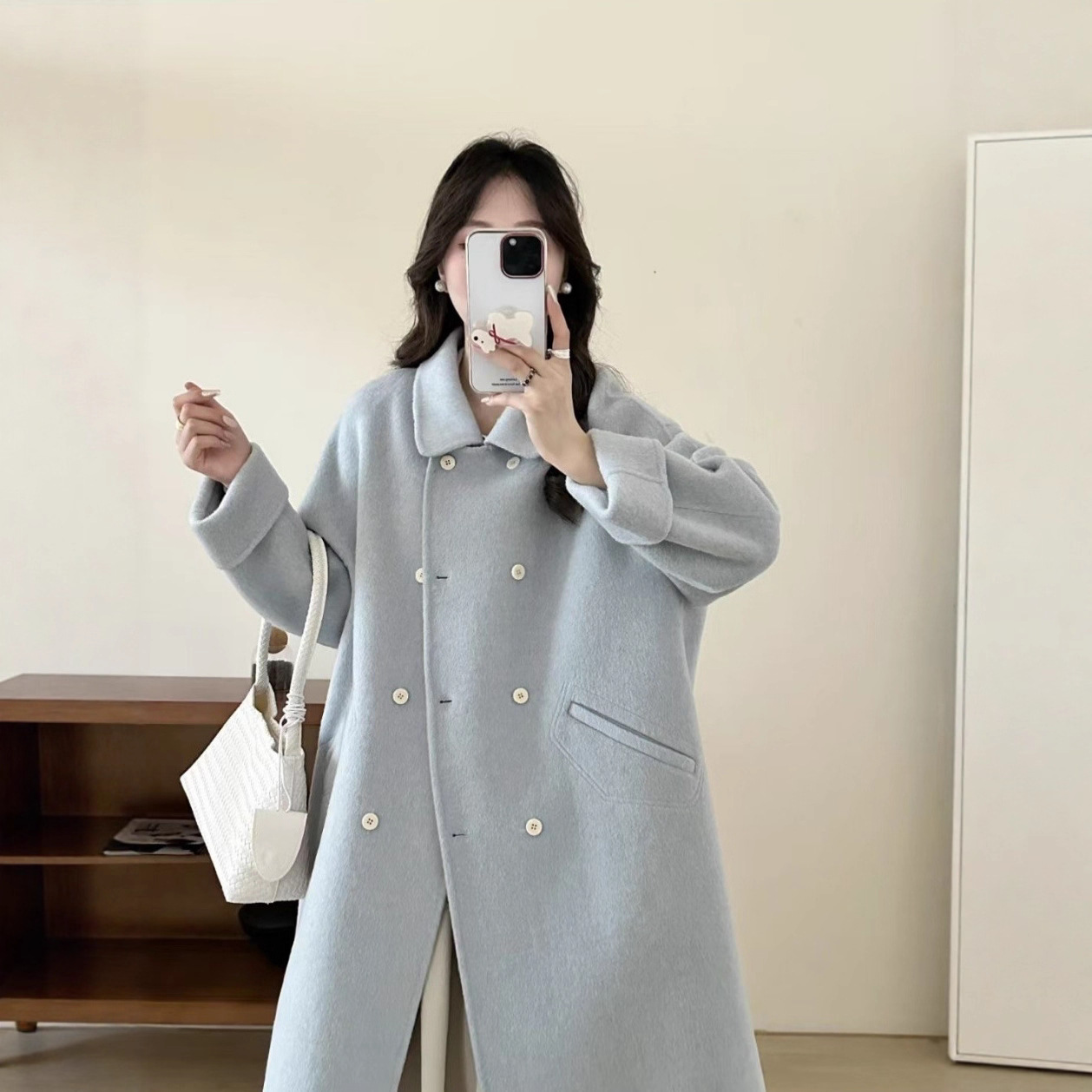25年新款双面羊毛大衣女娃娃领中长款毛呢大衣韩系气质双排扣外套