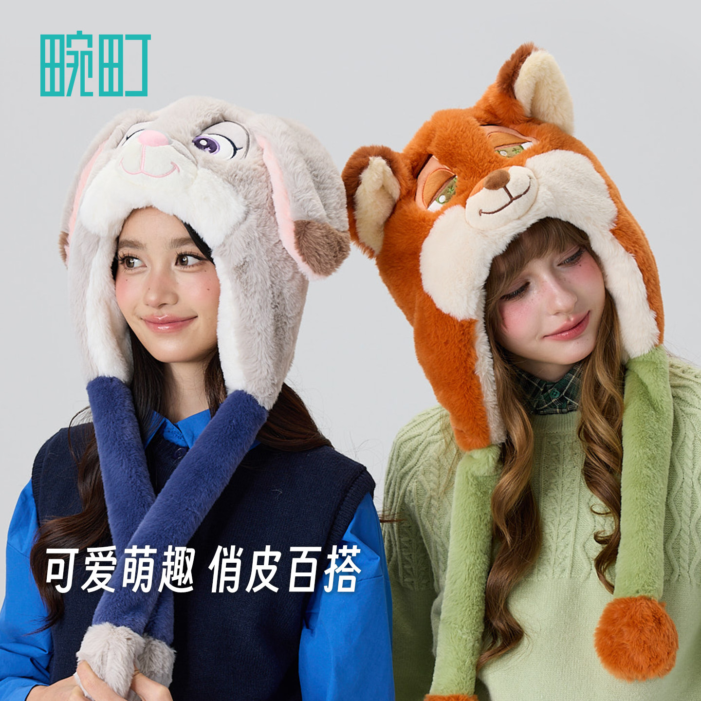 畹町正版迪士尼尼克狐狸朱迪兔子警官毛绒帽子女秋冬季保暖护耳帽