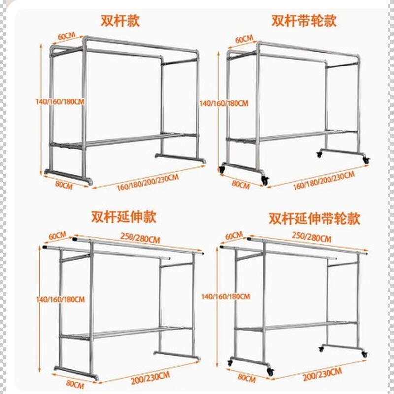 镀锌钢管晾衣架落地家用阳台挂衣户外室外防风双杆水管凉衣晒被子