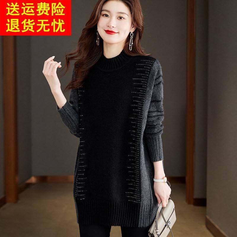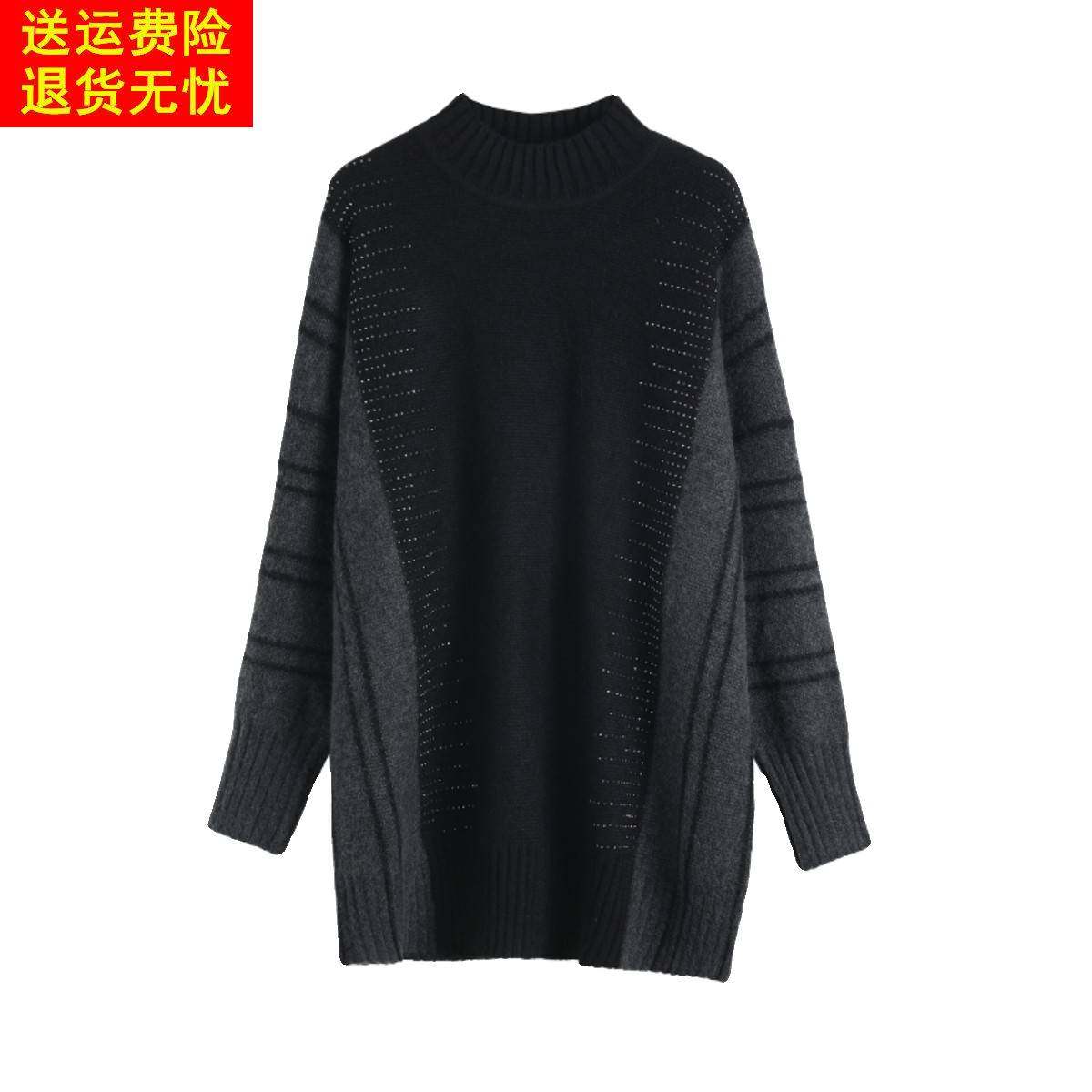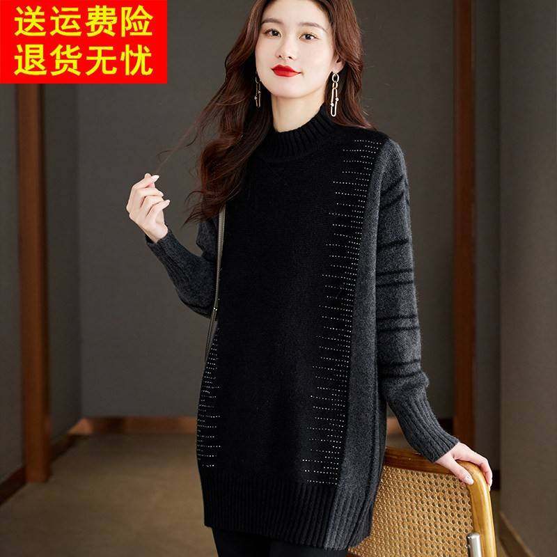 半高领黑灰色毛衣女秋冬中长款打底衫毛衣裙羊毛衫宽松大码蝙蝠衫