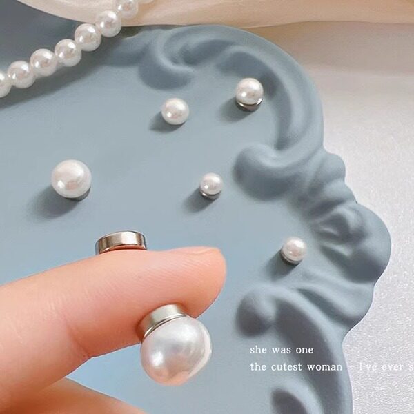 气质珍珠磁吸耳夹香槟红灰白色珠子夹耳式骨夹新款耳环轻奢高级感