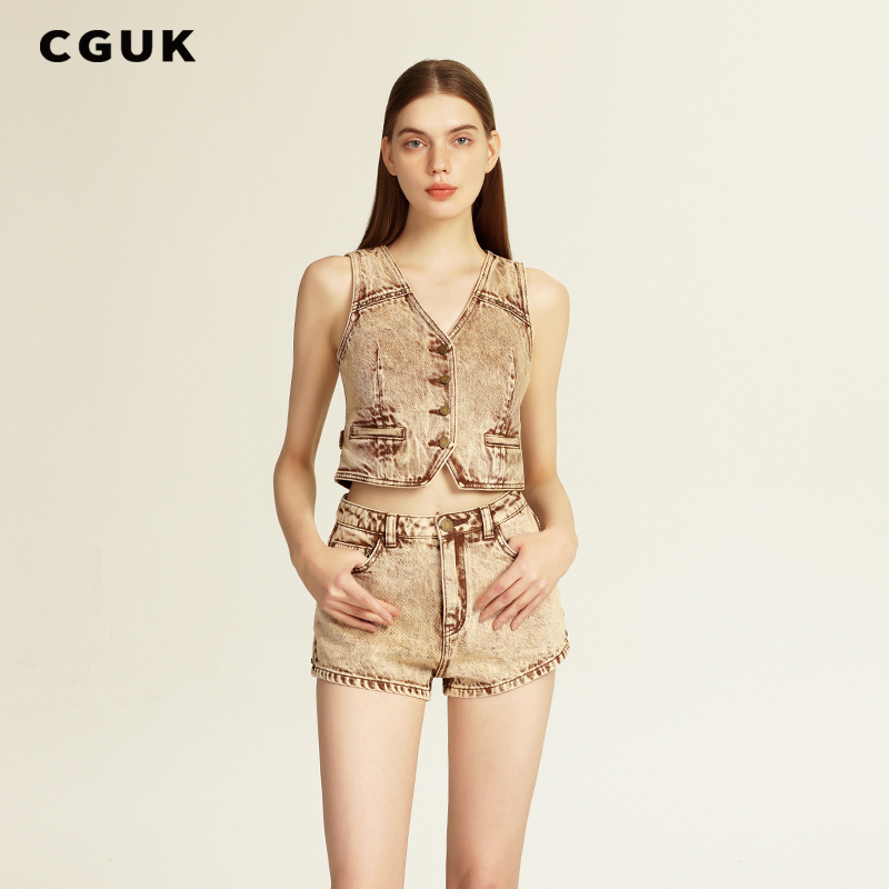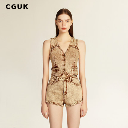 【明星同款】CGUK复古做旧100%棉燕麦色短裤梦境牛仔短裤