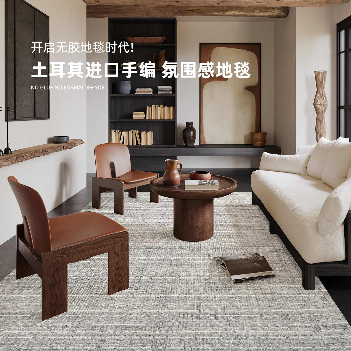 进口客厅地毯手工编织可折叠无胶