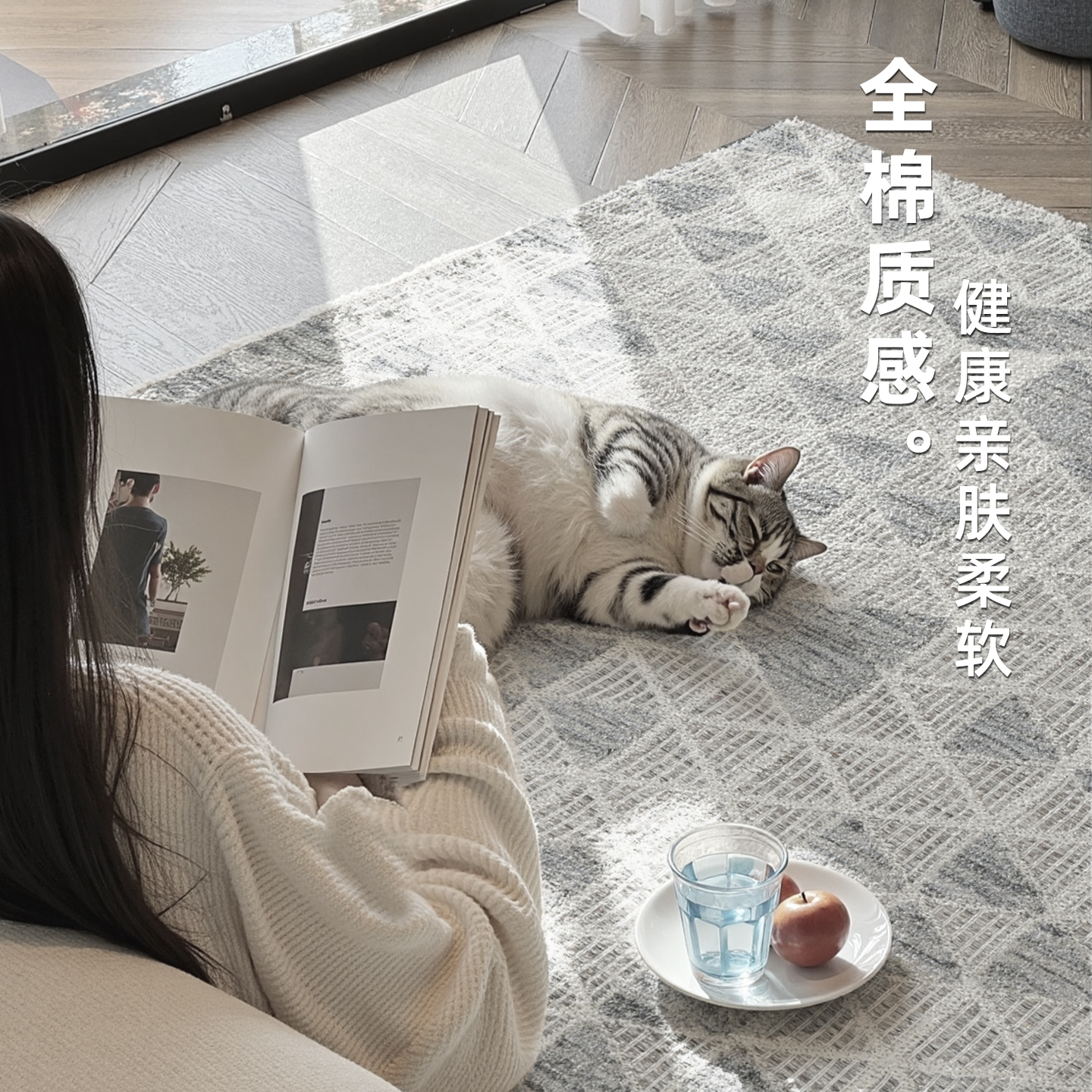 土耳其进口客厅地毯手工编织卧室沙发茶几毯纯棉可折叠水洗无胶水