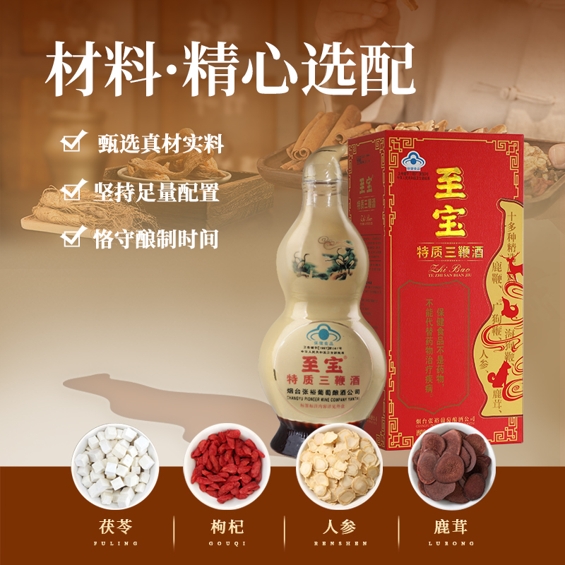 【品牌旗舰】张裕至宝特质三鞭酒葫芦人参枸杞补酒35度750ml盒装