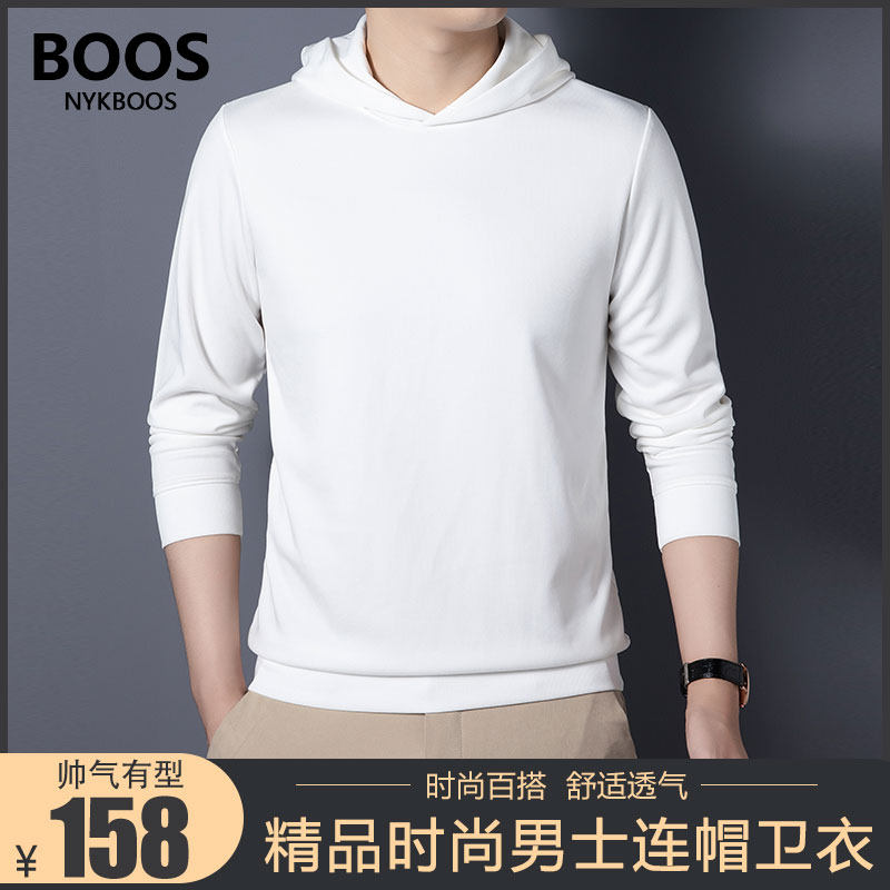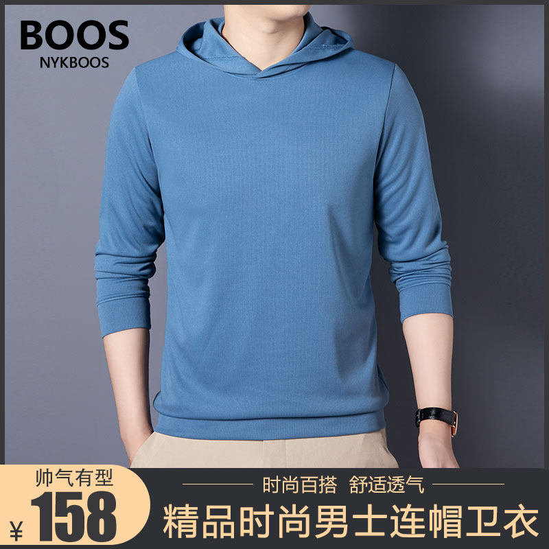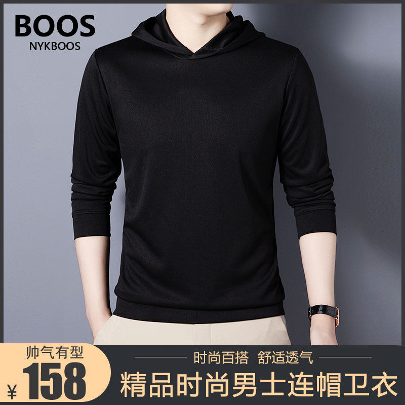 NYKBOOS春季新款2023男士连帽卫衣时尚宽松长袖运动休闲带帽T恤衫
