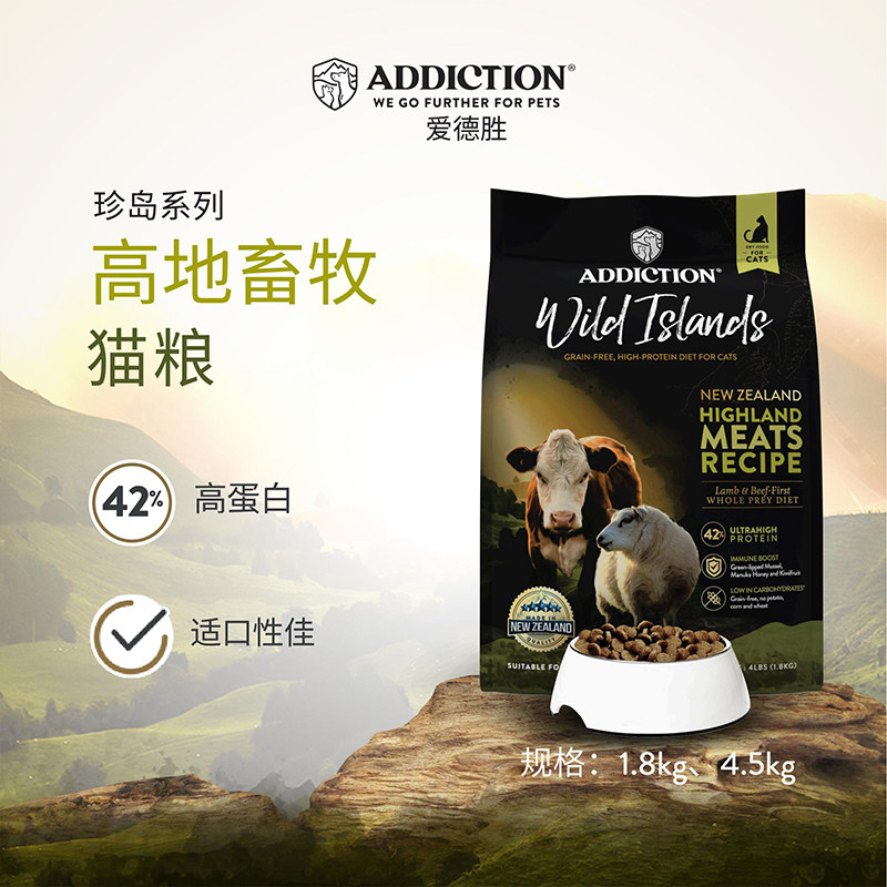 ADD爱德胜42%高蛋白麦卢卡蜂蜜奇异果绿唇贻贝高地畜牧猫粮4.5kg