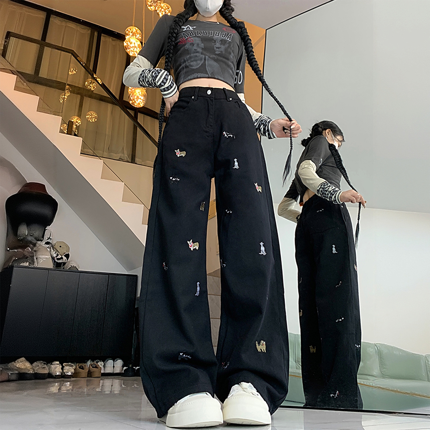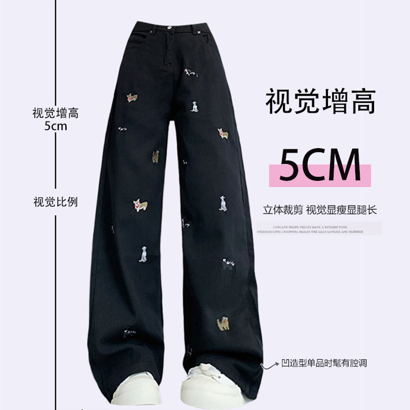 300斤大码女装黑色设计感牛仔裤女胖mm加绒加厚宽松显瘦直筒裤子