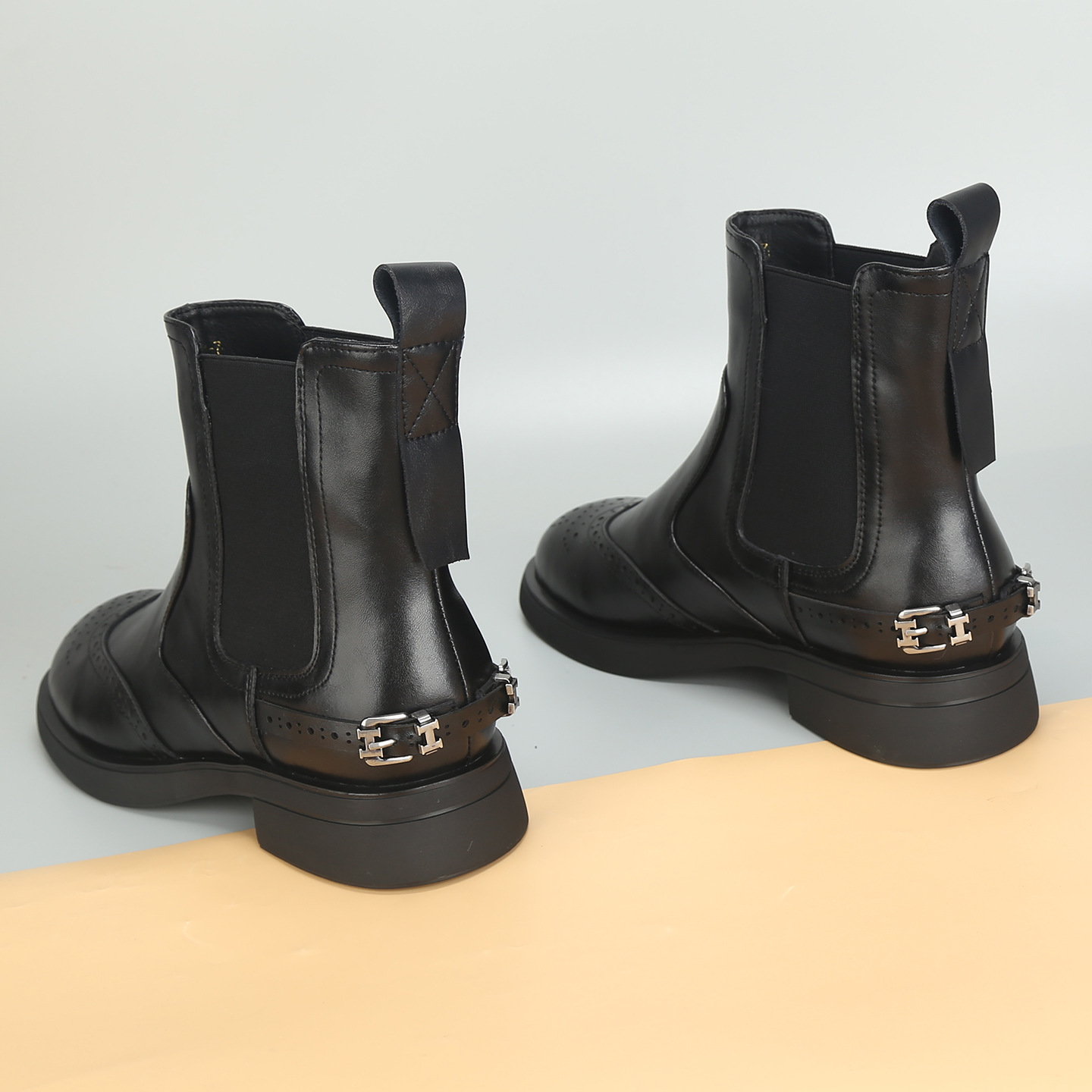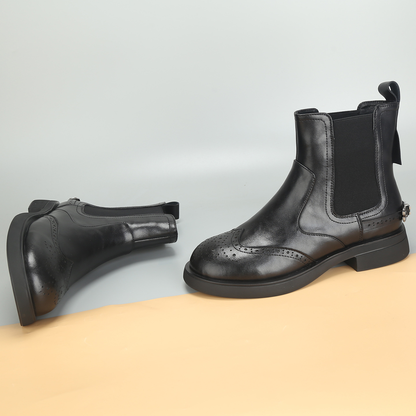 宽胖脚大码女鞋41到43秋季新款真皮靴子粗跟短靴切尔西靴宽头女靴