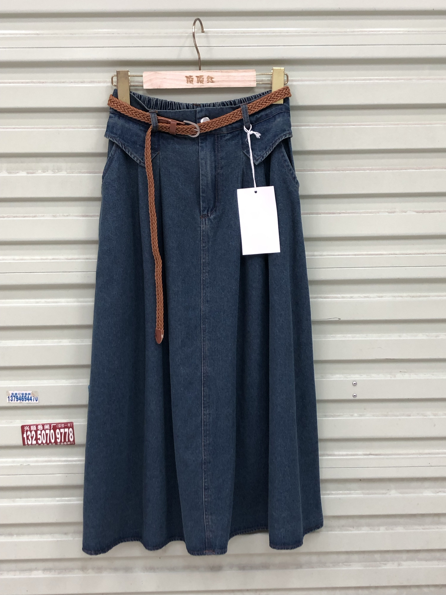 百搭牛仔半身裙口袋A字中长裙
