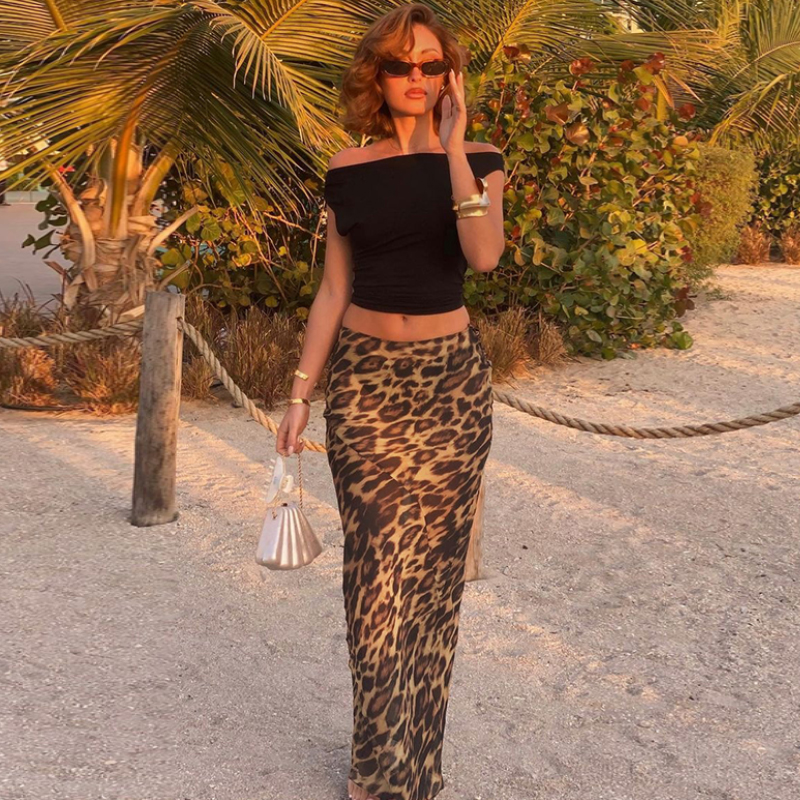 丹恋季节豹纹半身裙女夏季设计感小众高腰显瘦微透包臀鱼尾长裙子