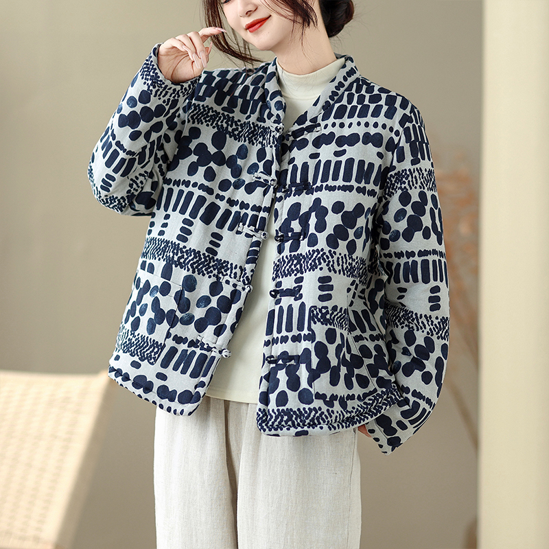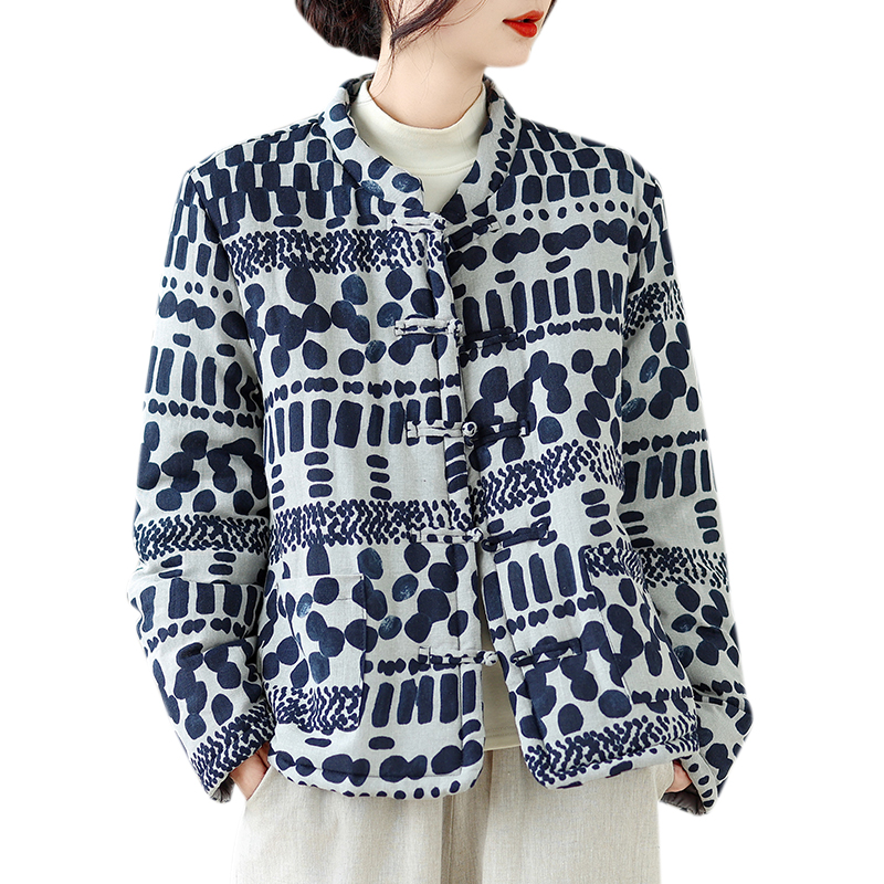 中国风盘扣外套加棉加厚棉衣女装冬季棉麻保暖棉袄上衣~清仓折扣