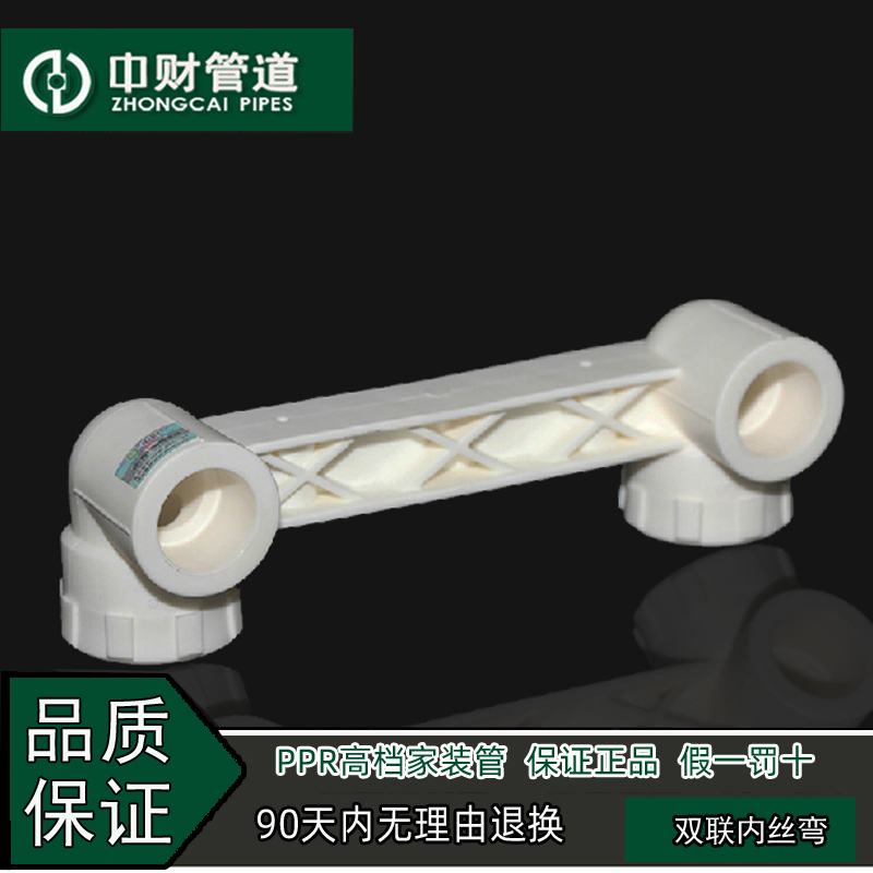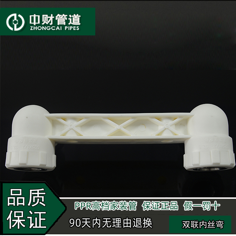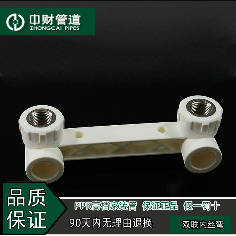 中财管道PPR冷热水管高档家装水管配件4分20/6分25双联内丝弯