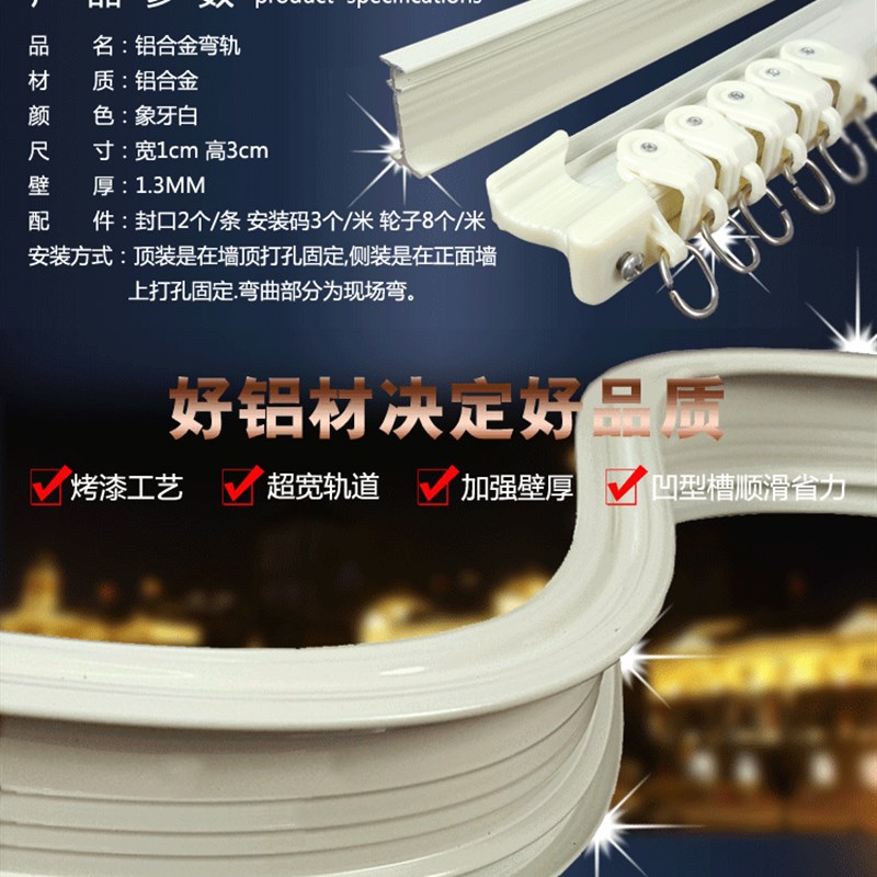 铝合金路轨弯轨幔轨飘窗阳台滑轨单轨双轨可弯曲静音加厚窗帘轨道