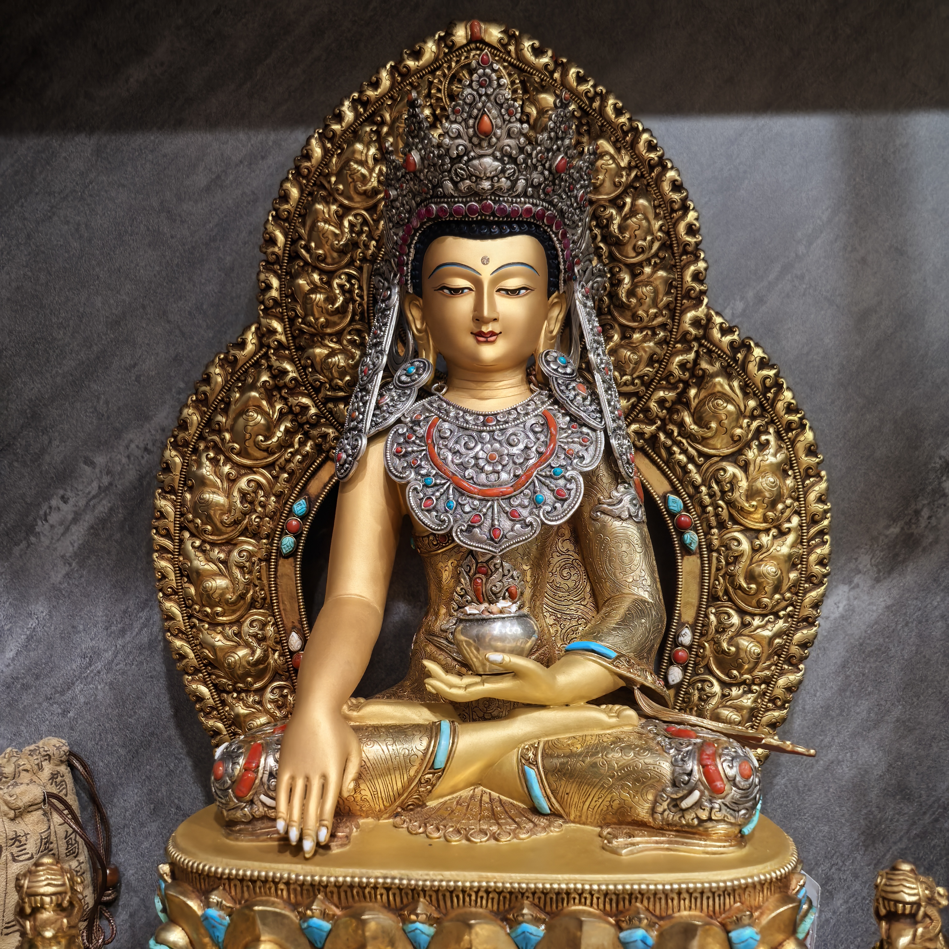 觉沃佛/觉悟佛/佛陀像/释迦佛/48cm尼泊尔释迦族鎏金手工佛像摆件