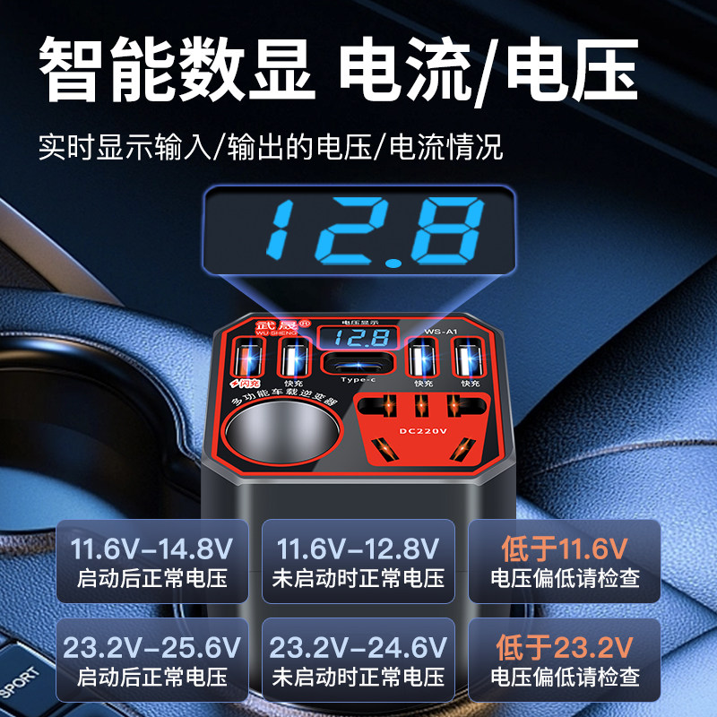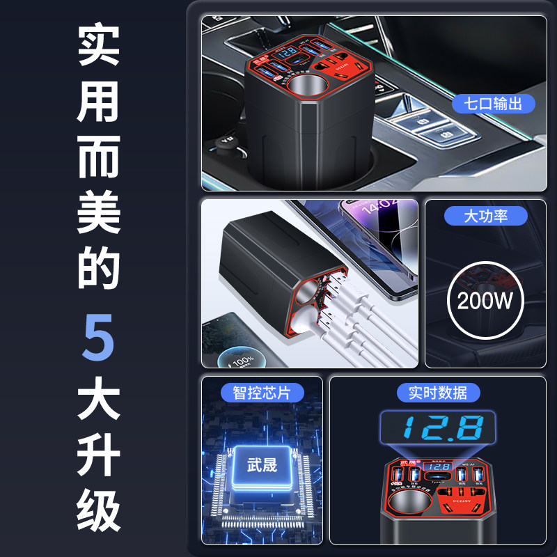 车载充电器12V24V转换220V通用大功率逆变器汽车货车快充点烟插座