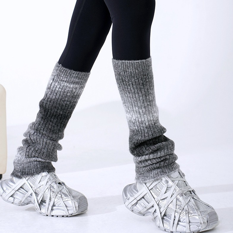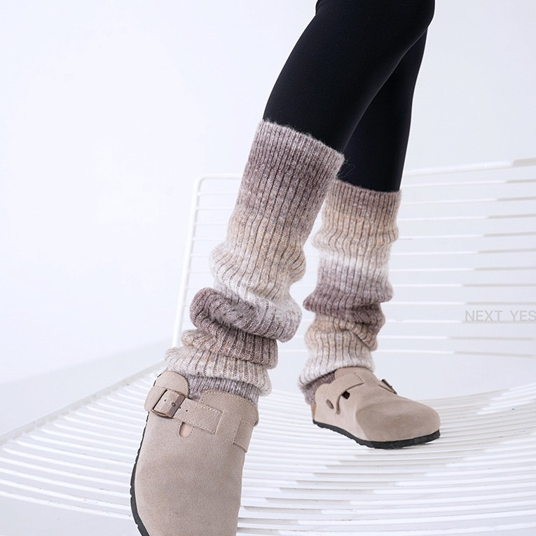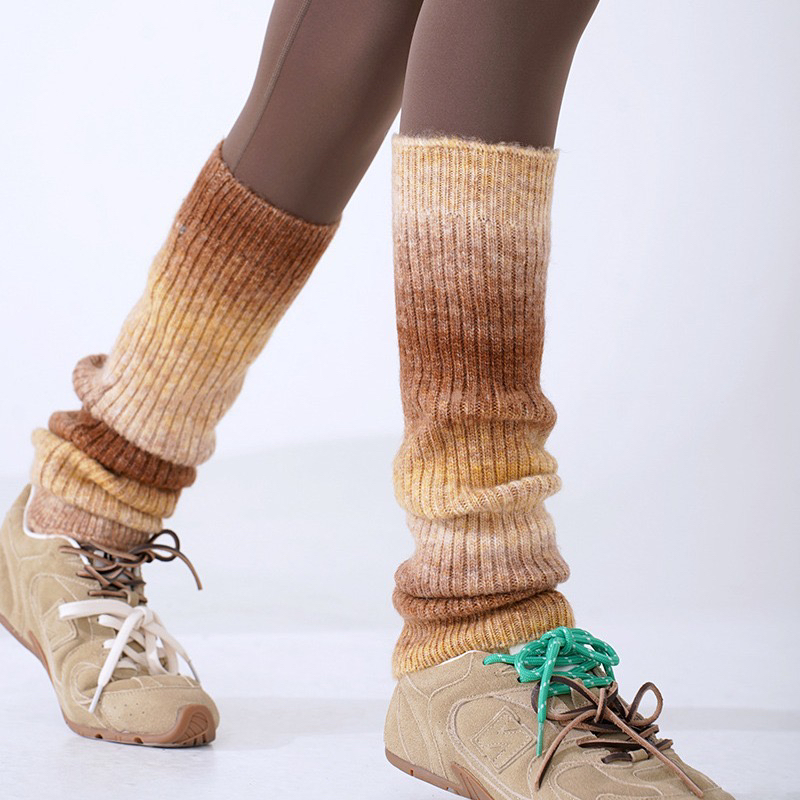 秋冬季新款羊毛保暖袜套渐变色护腿套针织毛线复古堆堆脚套小腿袜