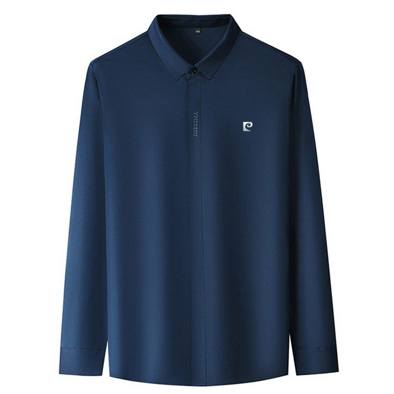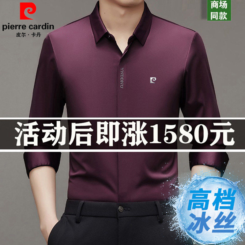 皮尔卡丹2025春秋高端冰丝无痕长袖衬衫男爸爸装商务休闲免烫寸衣