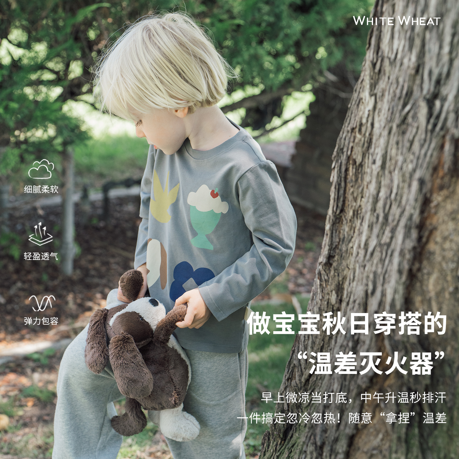 whitewheat儿童2025秋季新款上衣男女童休闲印花宝宝纯棉长袖T恤