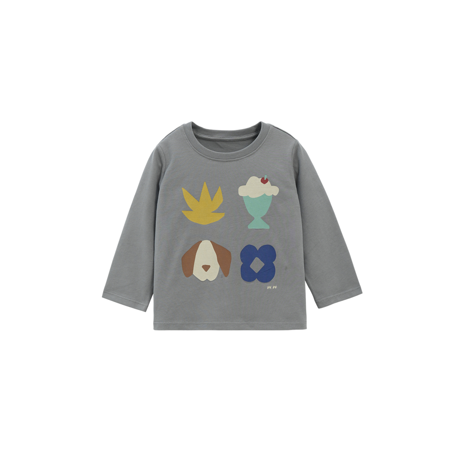 whitewheat纯棉印花长袖T恤