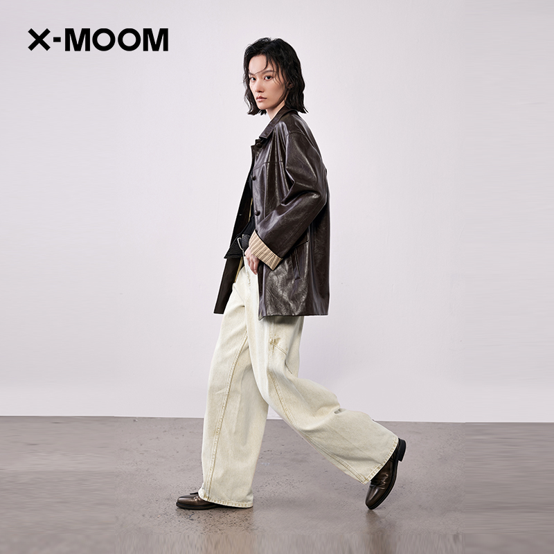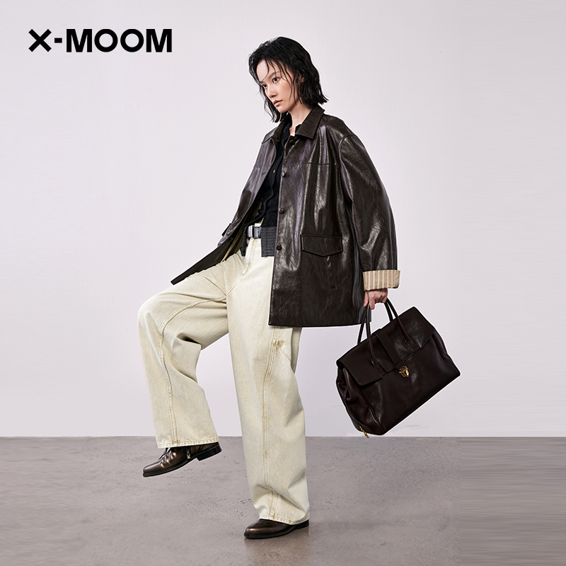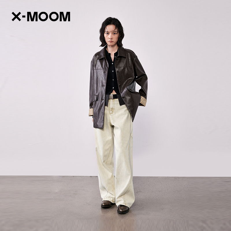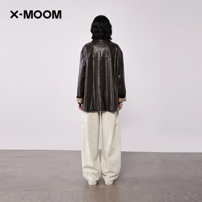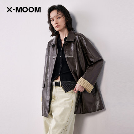 【商场同款】X--MOOM2025秋季新款复古高级感PU皮中长风衣外套女