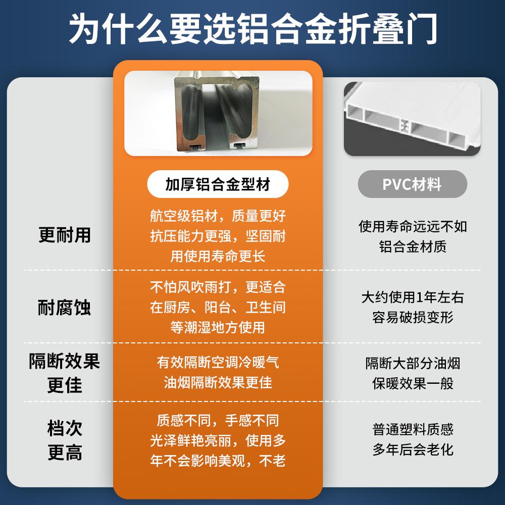 铝合金折叠门推拉门隐形开放式厨房燃气验收门简易百叶隔断门吊轨