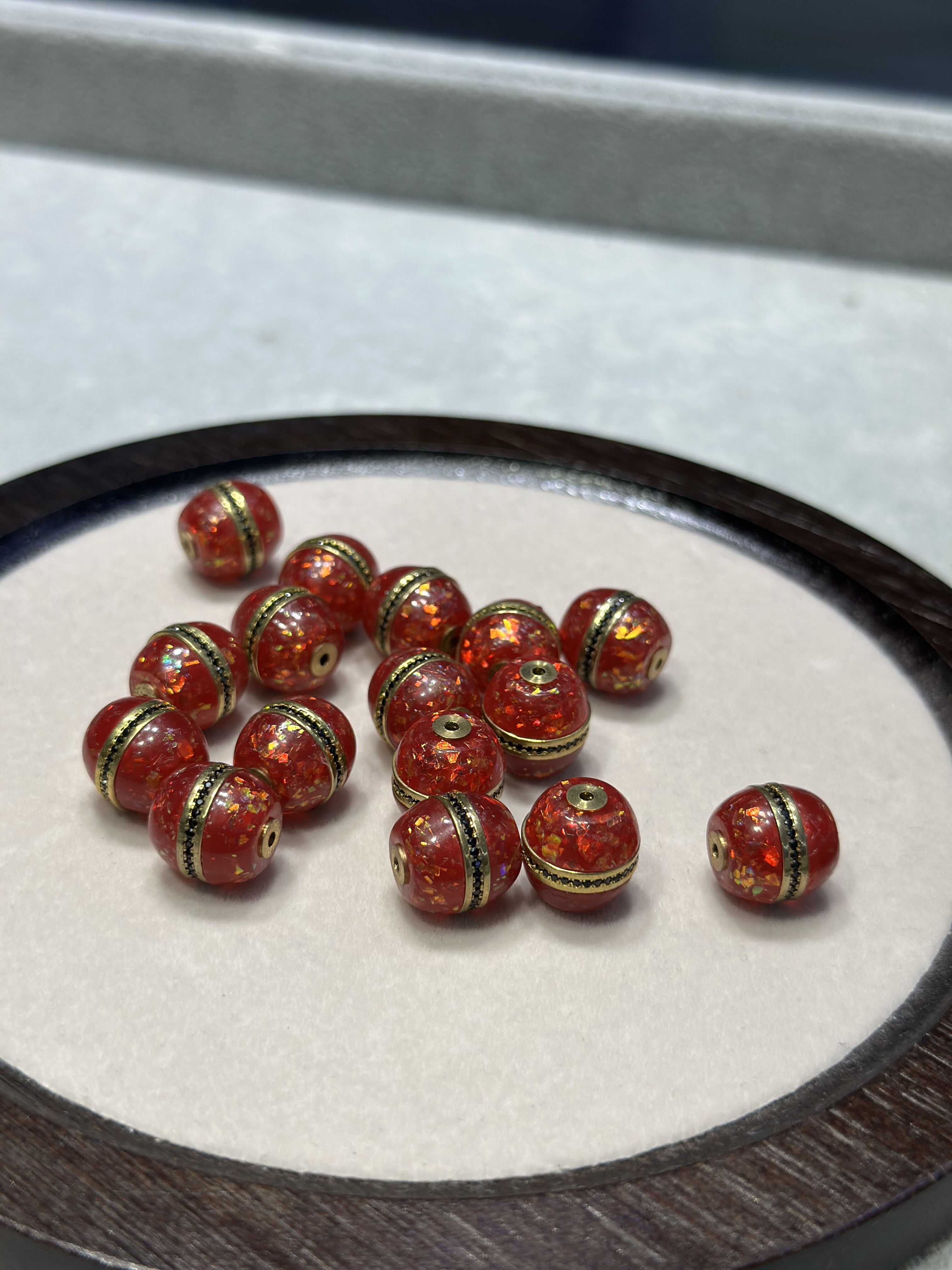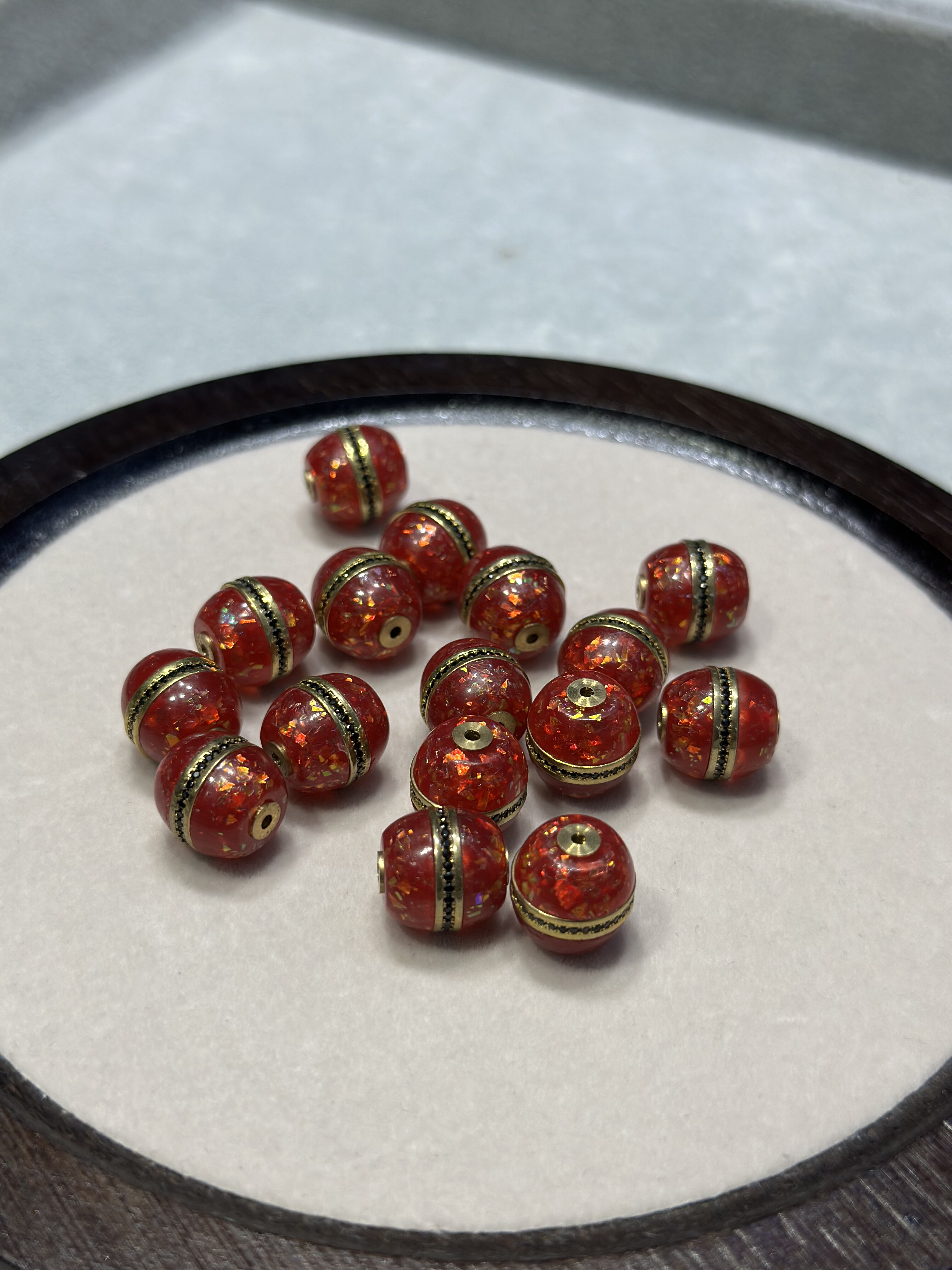 老型珠合成欧珀红色镶嵌黑钻汉堡珠12mm