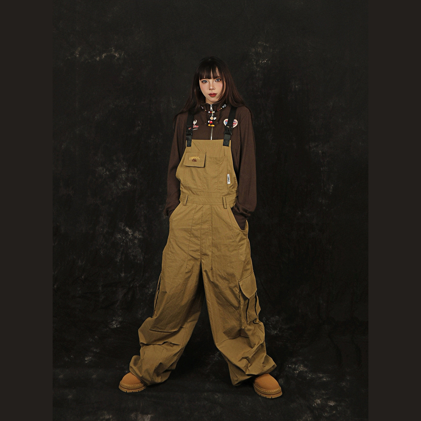 NNK美式复古新款工装背带裤男女宽松休闲高街设计感直筒阔腿长裤