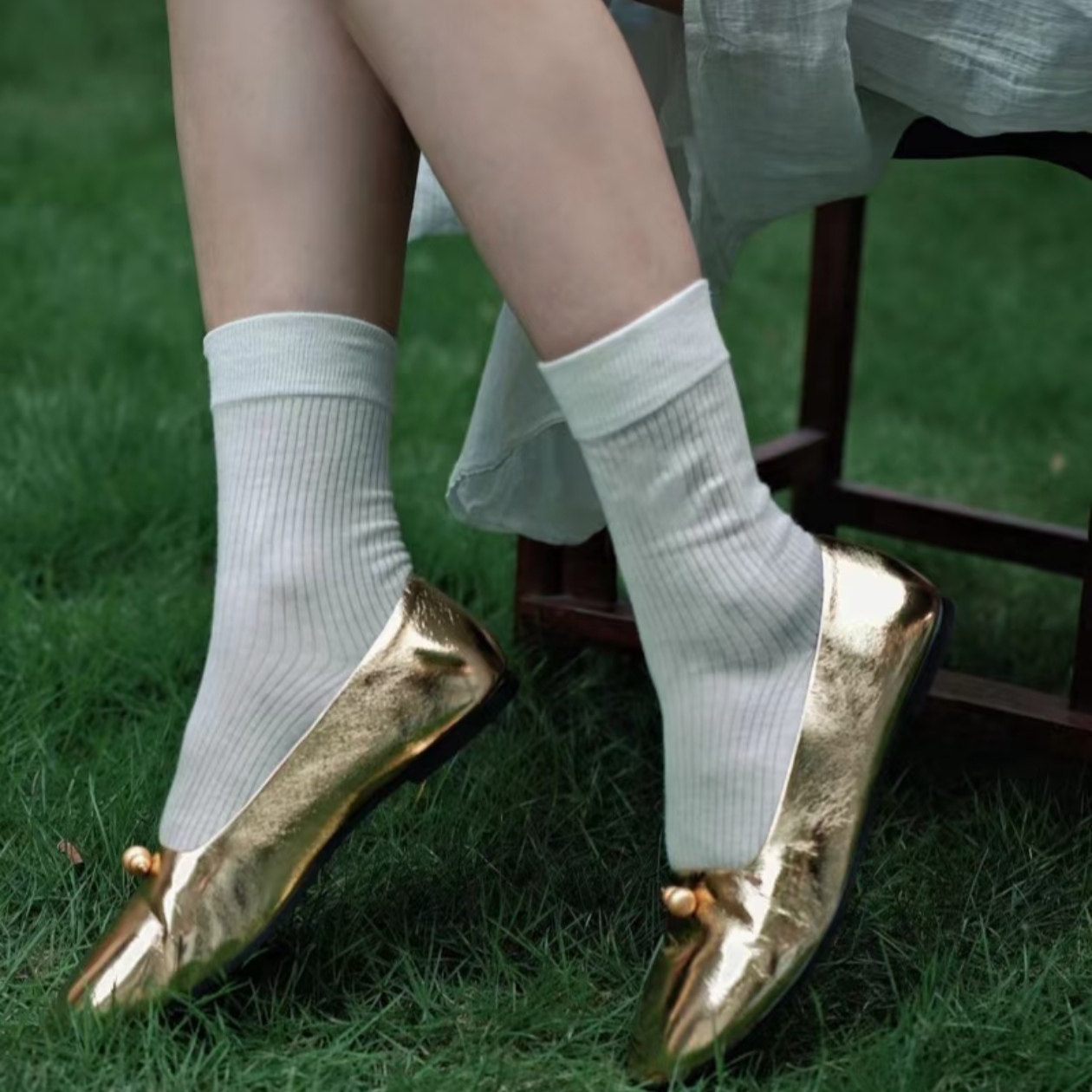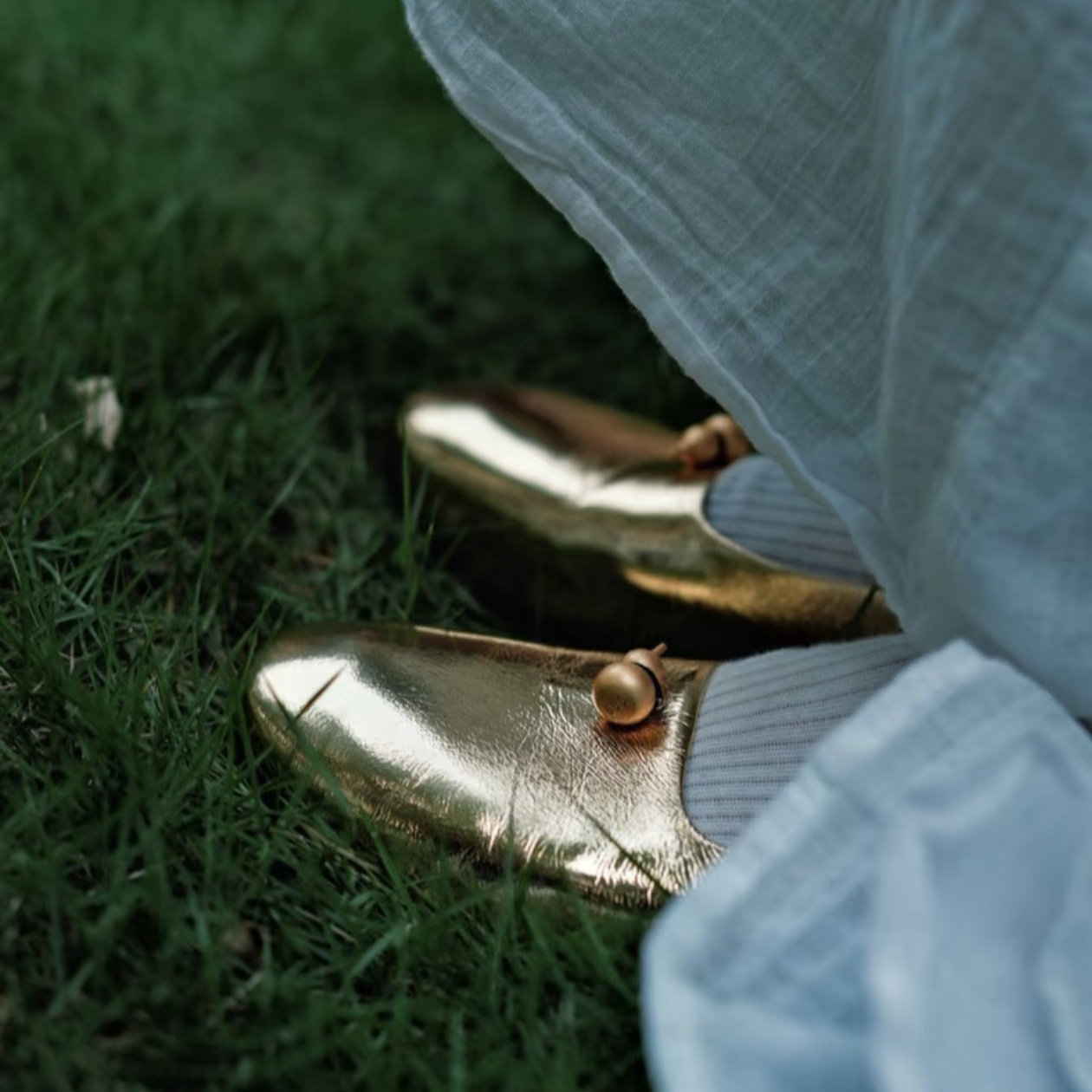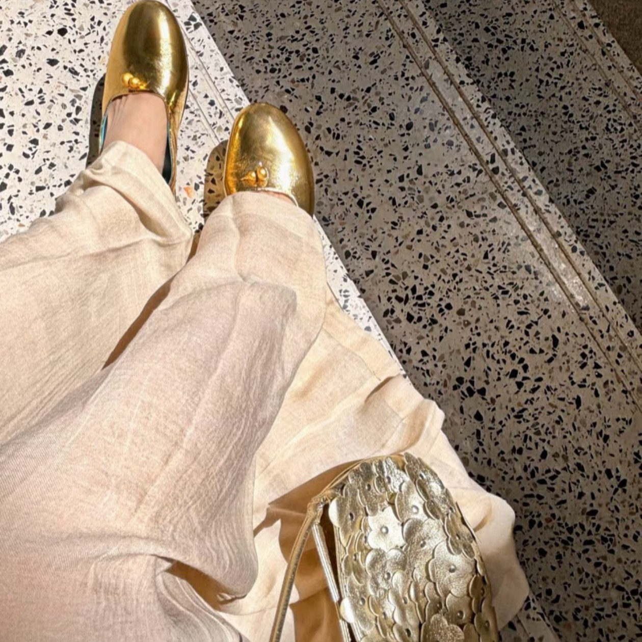 八万春意大利高奢皮料【鎏金 】葫芦芭蕾舞平底单鞋24K金皱皮