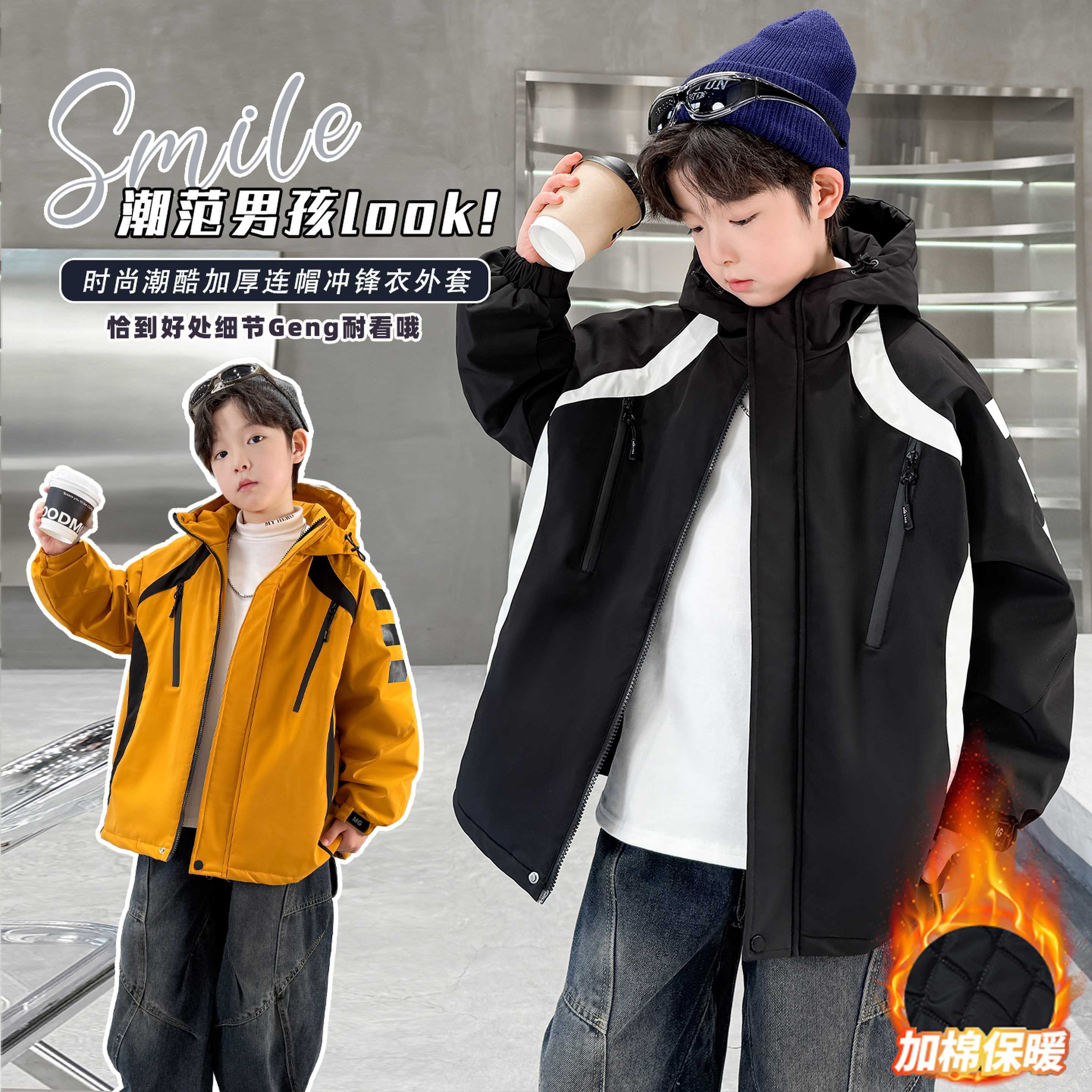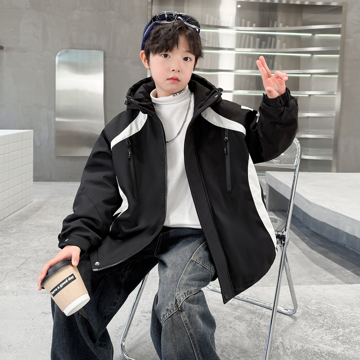 男童秋冬季外套2025新款潮帅气时髦中大儿童加厚冲锋衣男孩秋冬装