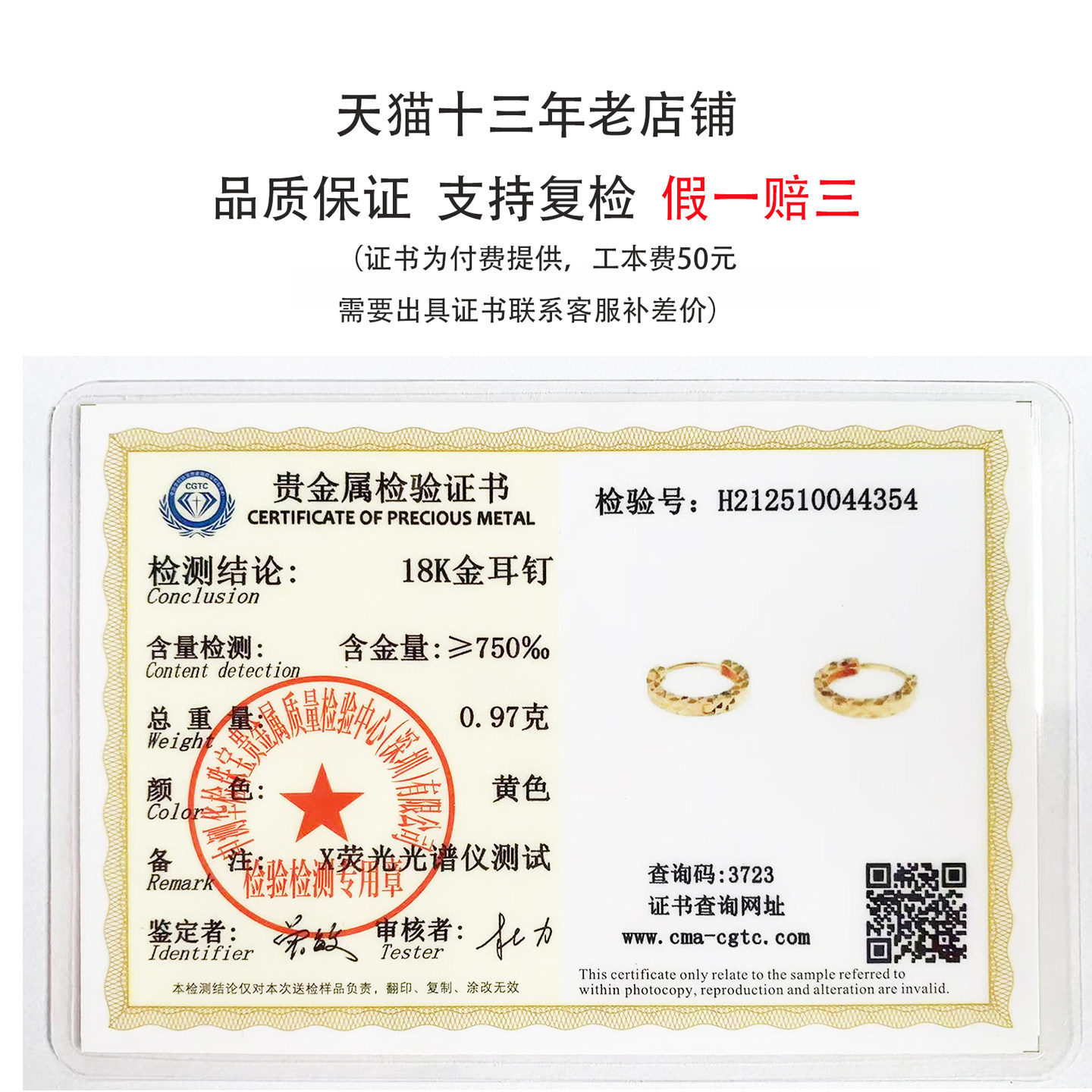 18k金螺丝耳堵支持复检假一赔三