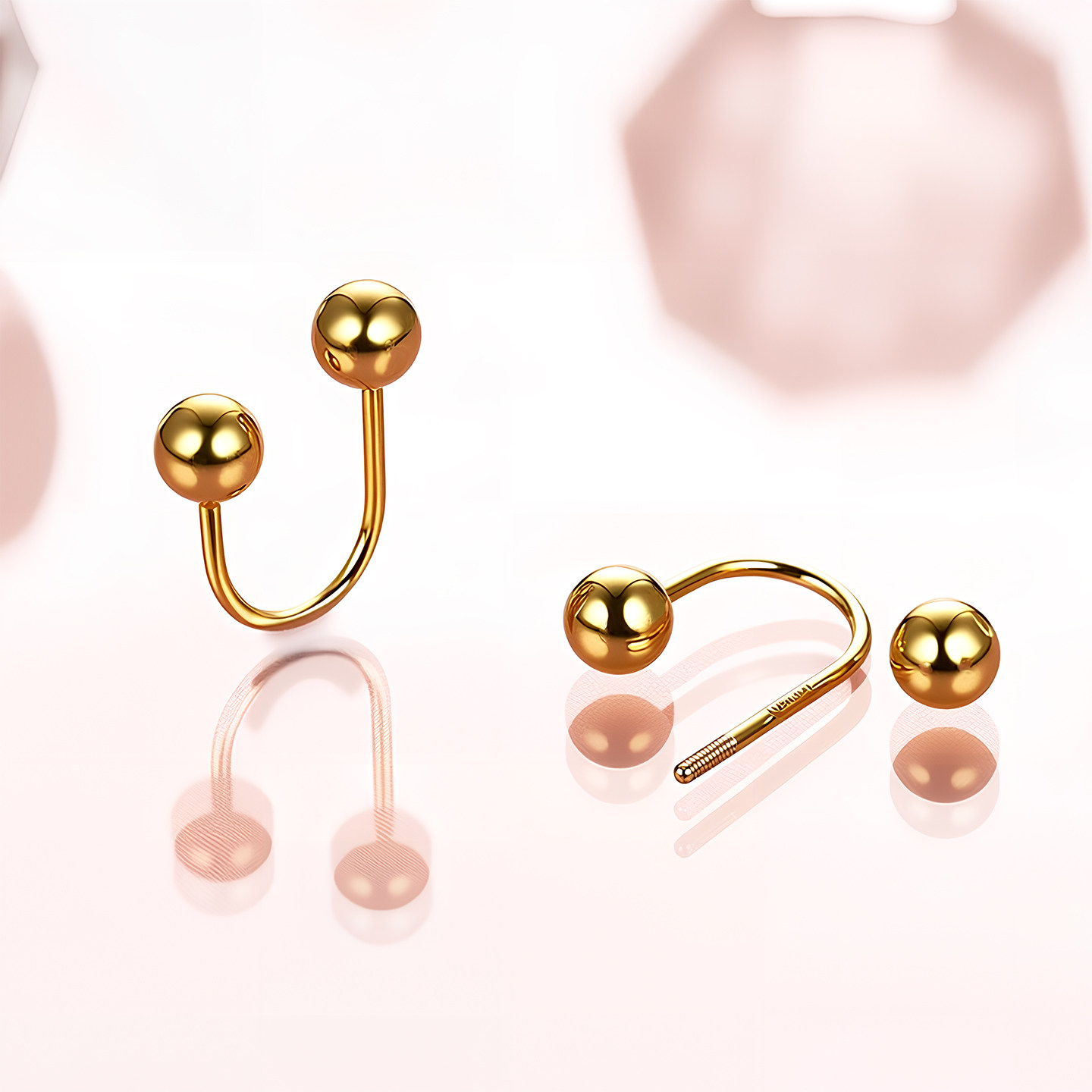 u型耳钉黄金螺旋耳堵耳骨耳钉螺丝拧扣 18k玫瑰金耳环女配件耳饰