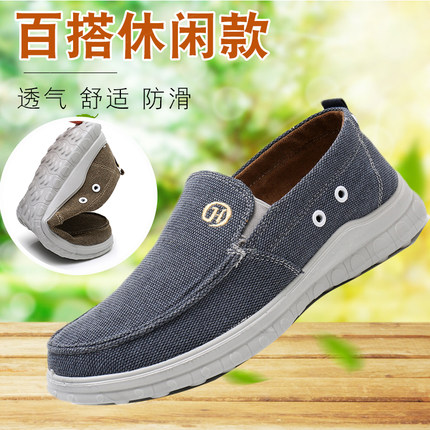 一脚蹬帆布鞋男韩版百搭休闲板鞋亚麻布老北京布鞋男鞋防臭男单鞋