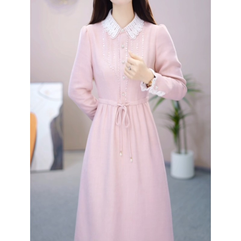 法式高端蕾丝领连衣裙女2025秋冬新款精致优雅收腰显瘦减龄中长裙