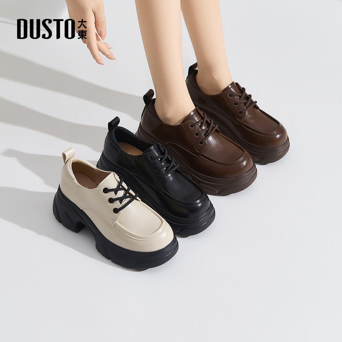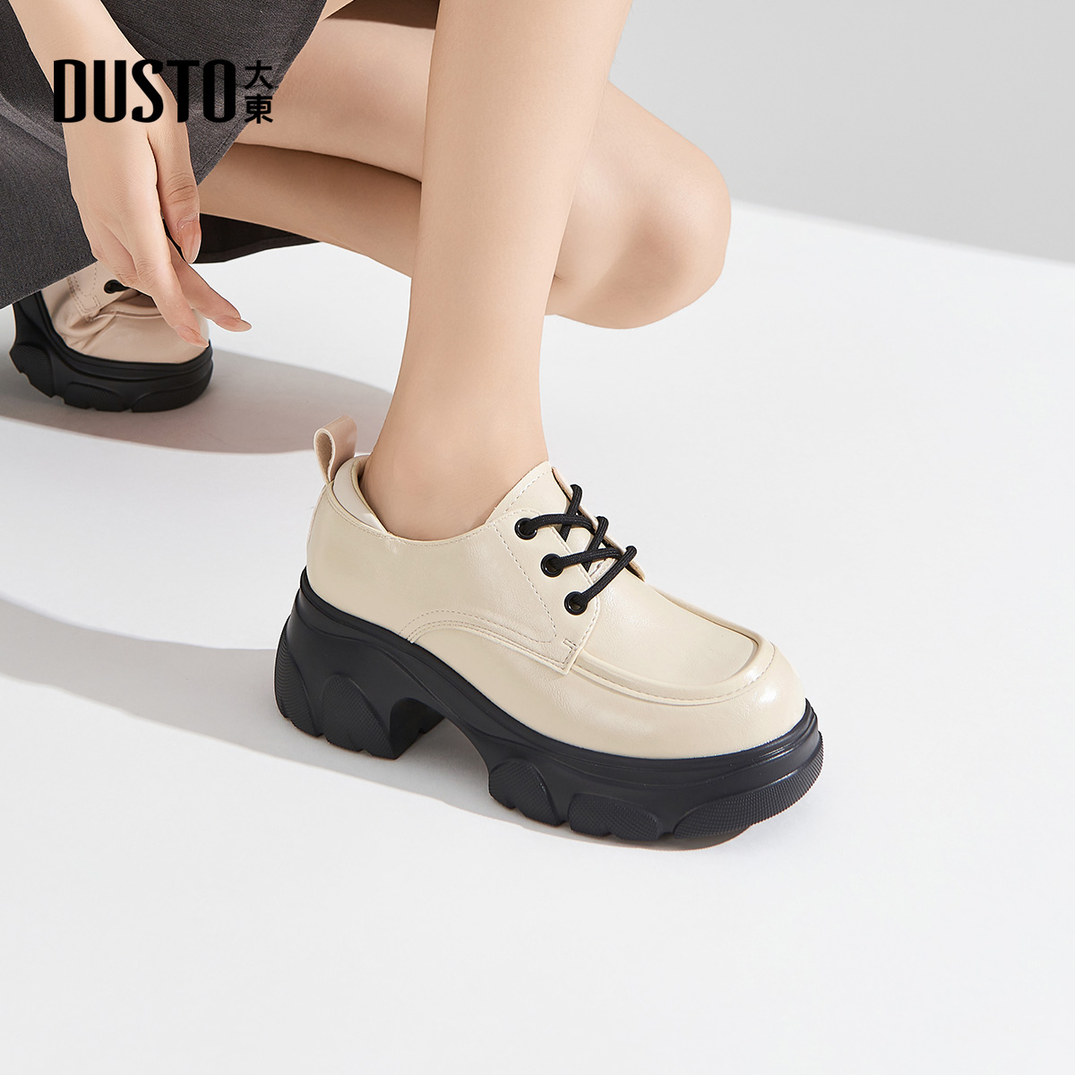 大东乐福鞋女鞋2025春秋新款英伦风小皮鞋厚底圆头高跟单鞋1603Z