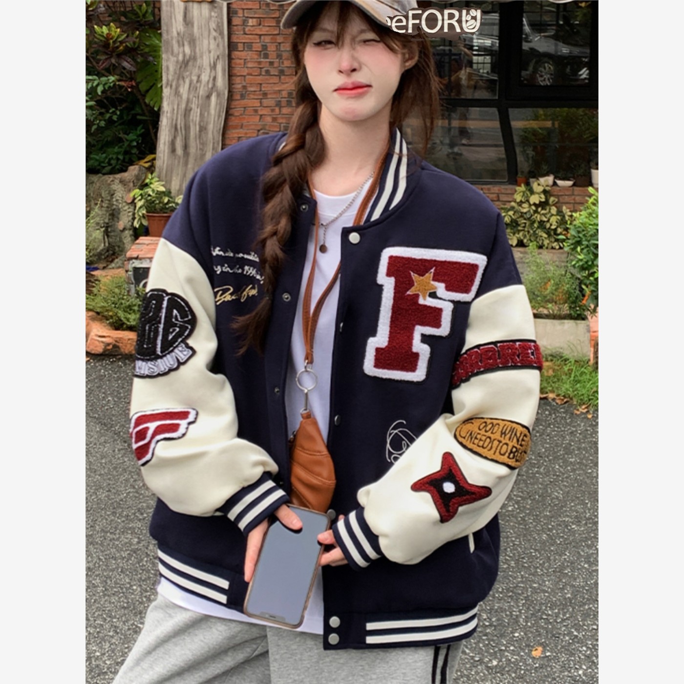 美式覆古棒球服外套女2025春秋新款宽松加厚百搭学生字母休闲夹克